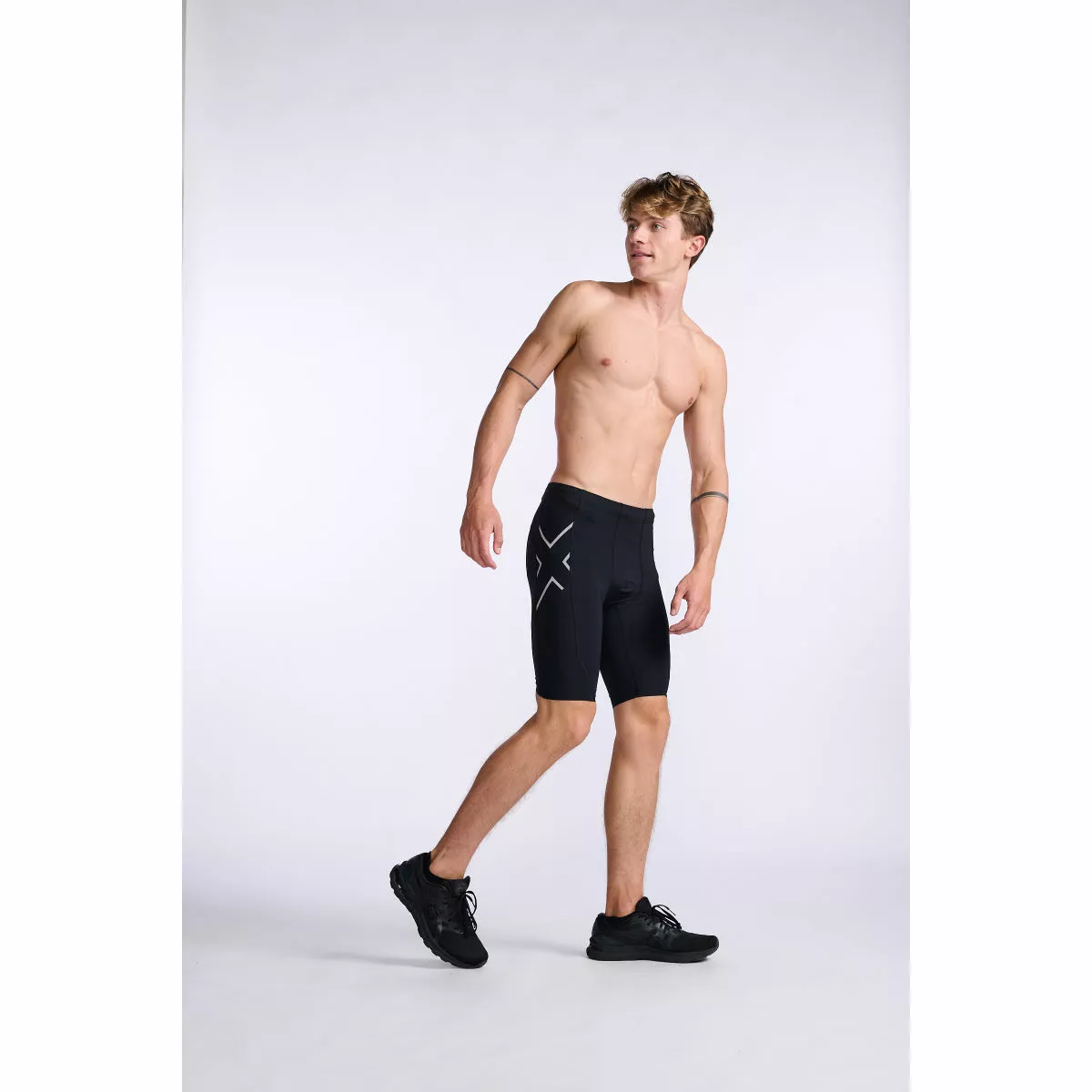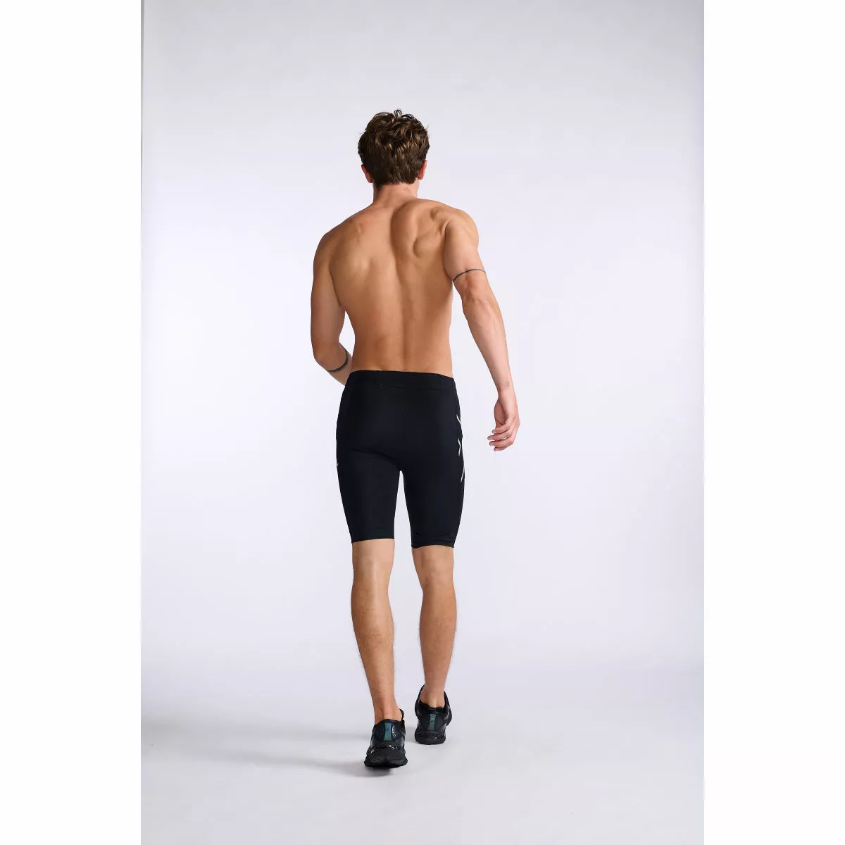 Crafted from lightweight PWX fabric with circular knit 360-degree stretch, the 2XU Aero Compression Shorts wrap your muscles in a tight compression fit to reduce muscle movement and damage while improving blood flow and speeding up recovery. HeiQ Smart Temp technology keeps you by increasing evaporation as your body temperature rises so you remain dry and focused. A drawstring waistband ensures a secure fit and a zip back pocket keeps small items like your card or keys safe. Finished with reflective detailing to keep you visible in low light.