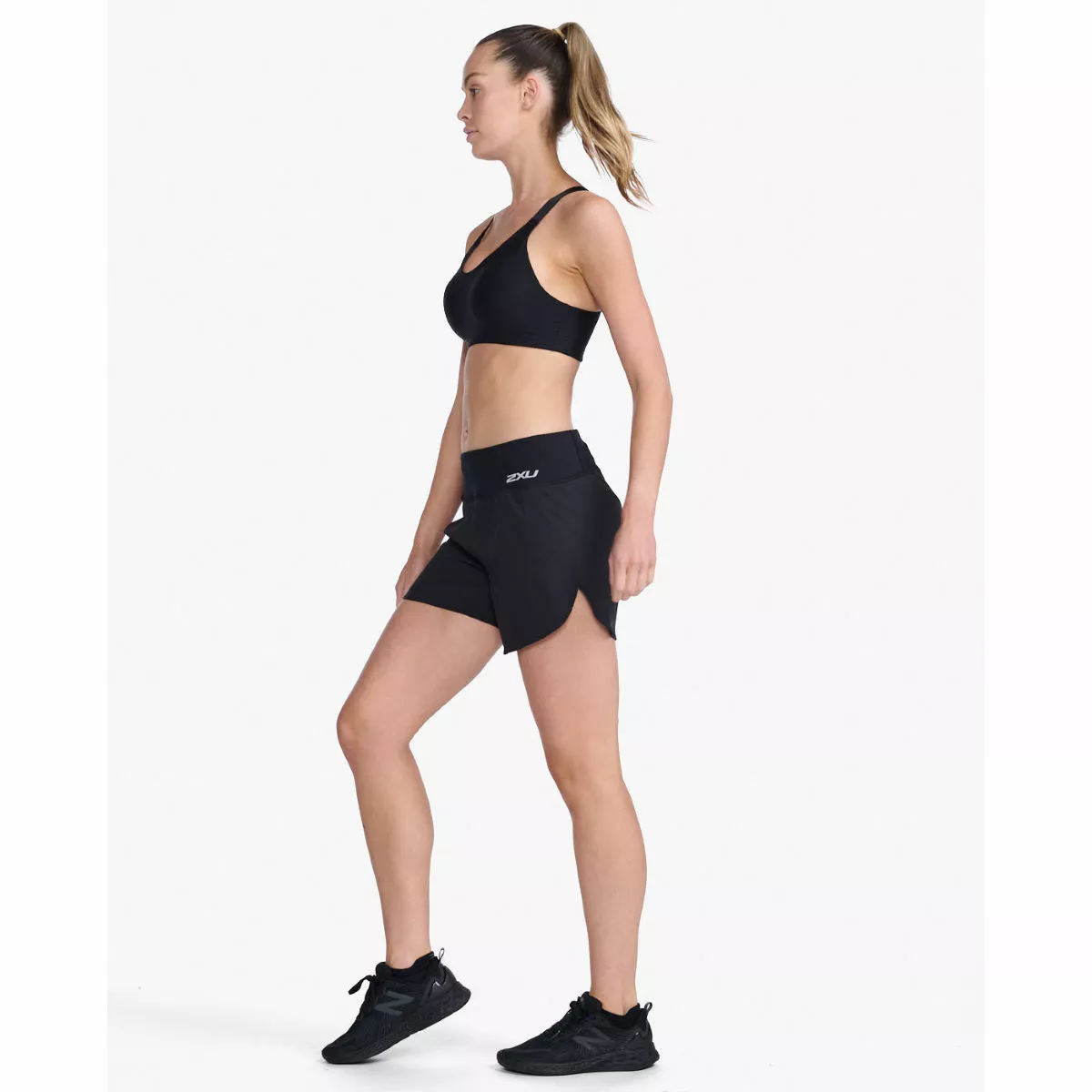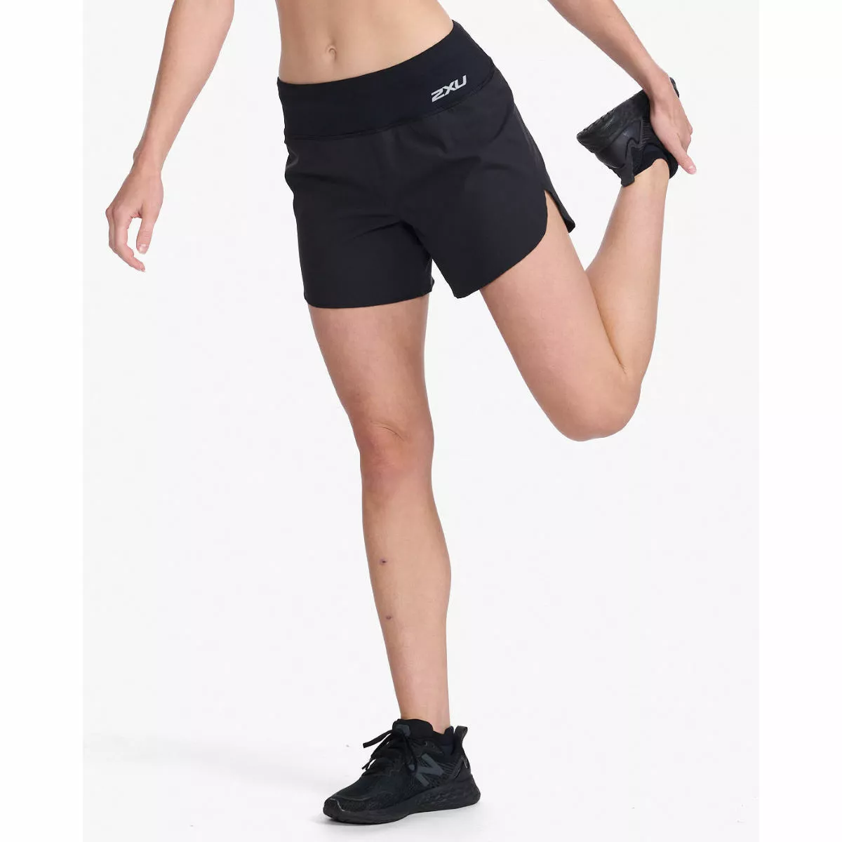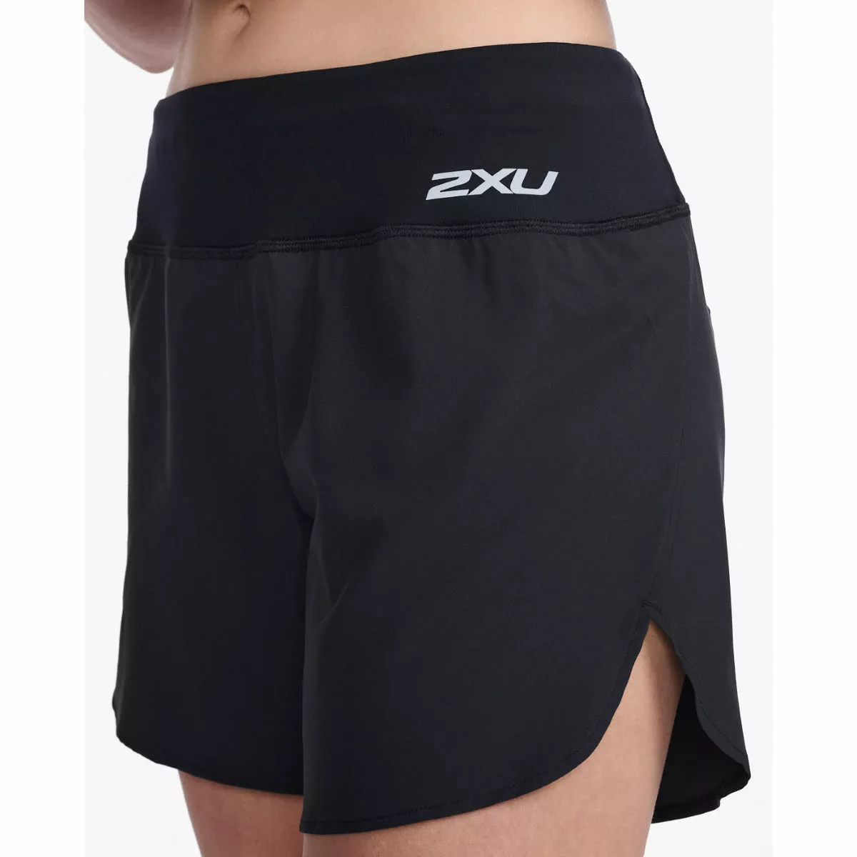 Crafted from stretch woven fabric, the 2XU Women’s Aero 5″ Running Shorts are lightweight, comfortable and breathable. Fast-wicking properties draw moisture away from the skin so you remain dry while a brief liner and elastic waistband with an internal drawcord enhance the fit. A back zip pocket gives secure storage to any small essential items and reflective detailing works to keep you visible when running in low lighting conditions.