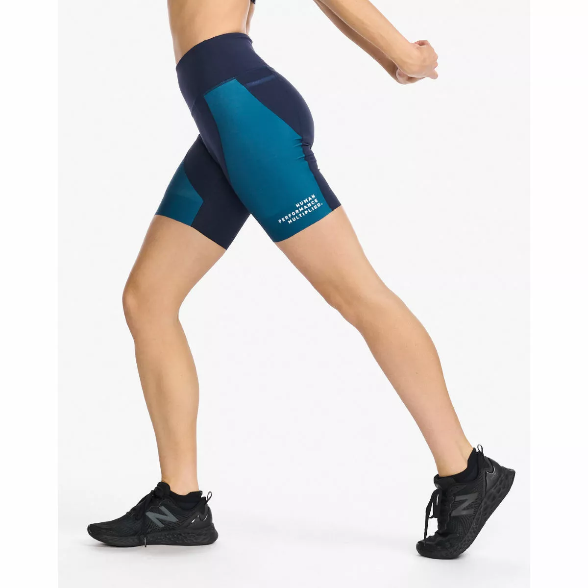 Crafted from PWX fabric with circular knit 360-degree stretch, the 2XU Women’s Aero 7″ Tri Shorts deliver a secure fit that reduces muscle movement while enhancing performance and preventing fatigue. The form-fitting construction provides a streamlined aerodynamic fit and grown on leg grippers keep everything locked in place to stop the shorts from riding up when on the move. The TMF® Aero Tri Chamois is perfect for mid-distance races and boasts 90 density foam (6mm) with a square holed air channel fabric design to optimise wicking and drying properties. Finished with easily accessible rear pockets for storage of your race-day essentials.