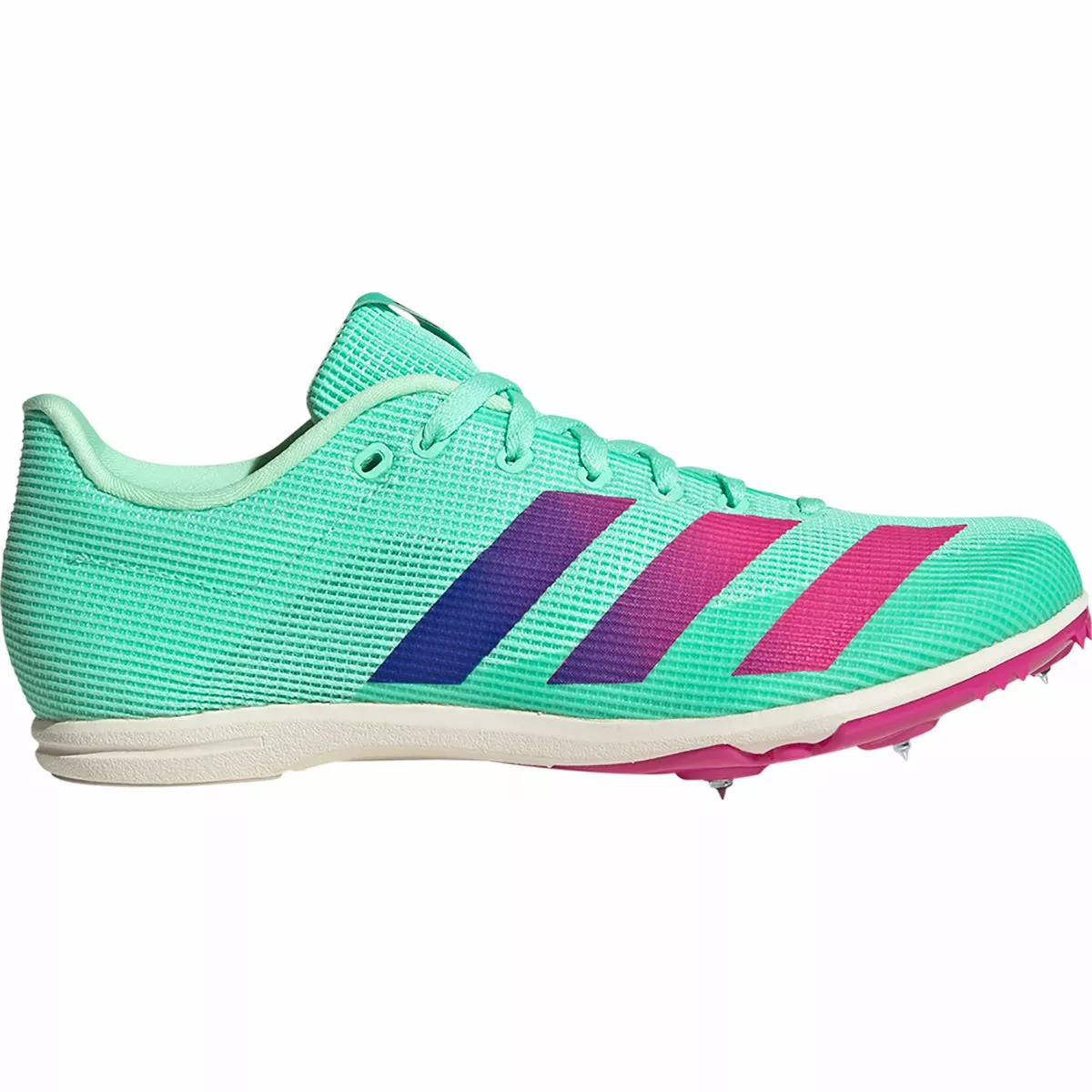 Enhancing your young athletes running and jumping performance at track and field events, the adidas Junior Allroundstar Running Spikes feature a mixed textile mesh and synthetic upper that keeps your feet secure, cool and well-ventilated. The lace closure gives a secure fit and the moulded Pebax plate outsole with five spikes placed at the forefoot ensures maximum grip and traction.