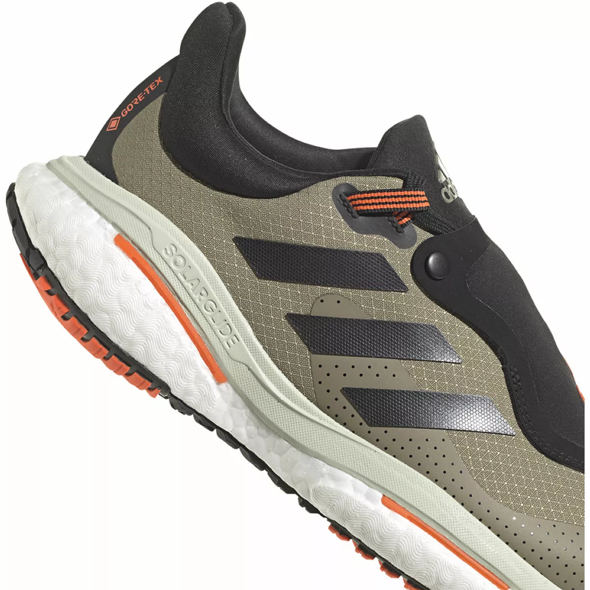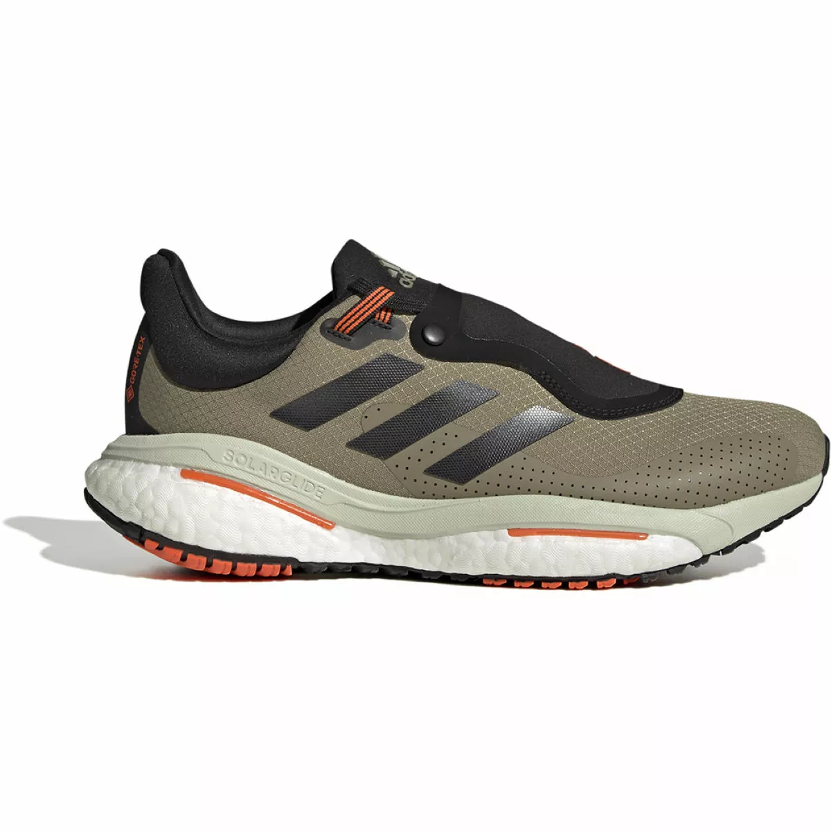 Take on wet weather running and keep your feet dry in the adidas Solar Glide 5 Gore-Tex Running Shoes. Designed with GORE-TEX textile upper and inner bootie that contains at least 50% Parley Ocean plastic for a sustainable design approach. The Boost midsole provides incredibly comfortable underfoot cushioning, absorbing impact strike and returning energy that is enhanced by the LEP (Linear Energy Push) torsion system for snappy transition and explosive take-off. Finished with a Continental™ rubber outsole for a durable and reliable grip on a variety of running surfaces.