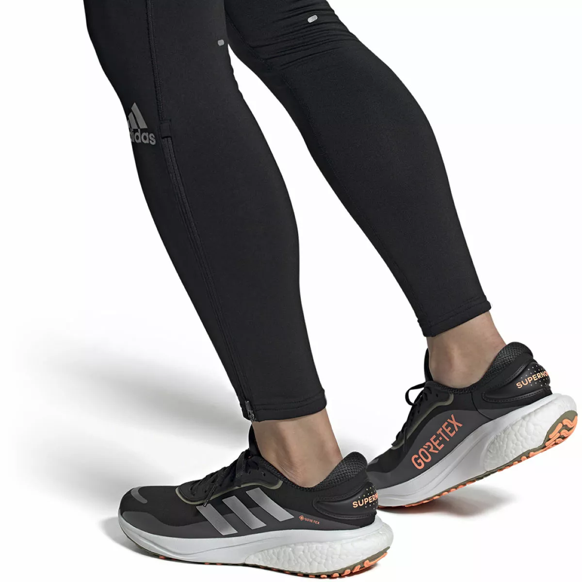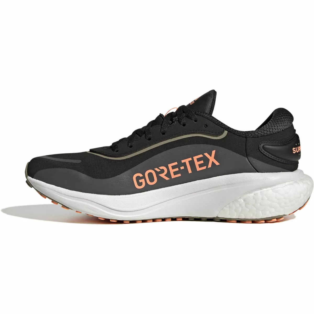 Built to keep your feet dry when running in wet conditions, the adidas Supernova Gore-Tex Running Shoes are designed with a waterproof Gore-Tex upper. This keeps the rain at bay without sacrificing breathability so you can run comfortably without letting the weather get in the way of your training routine. At the midsole, BOOST cushioning provides reliable impact protection and has a high level of energy return for a responsive ride. Finished with a durable rubber outsole that provides excellent traction on wet surfaces.