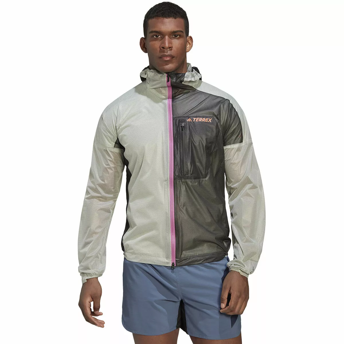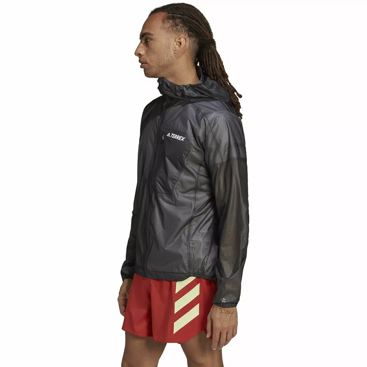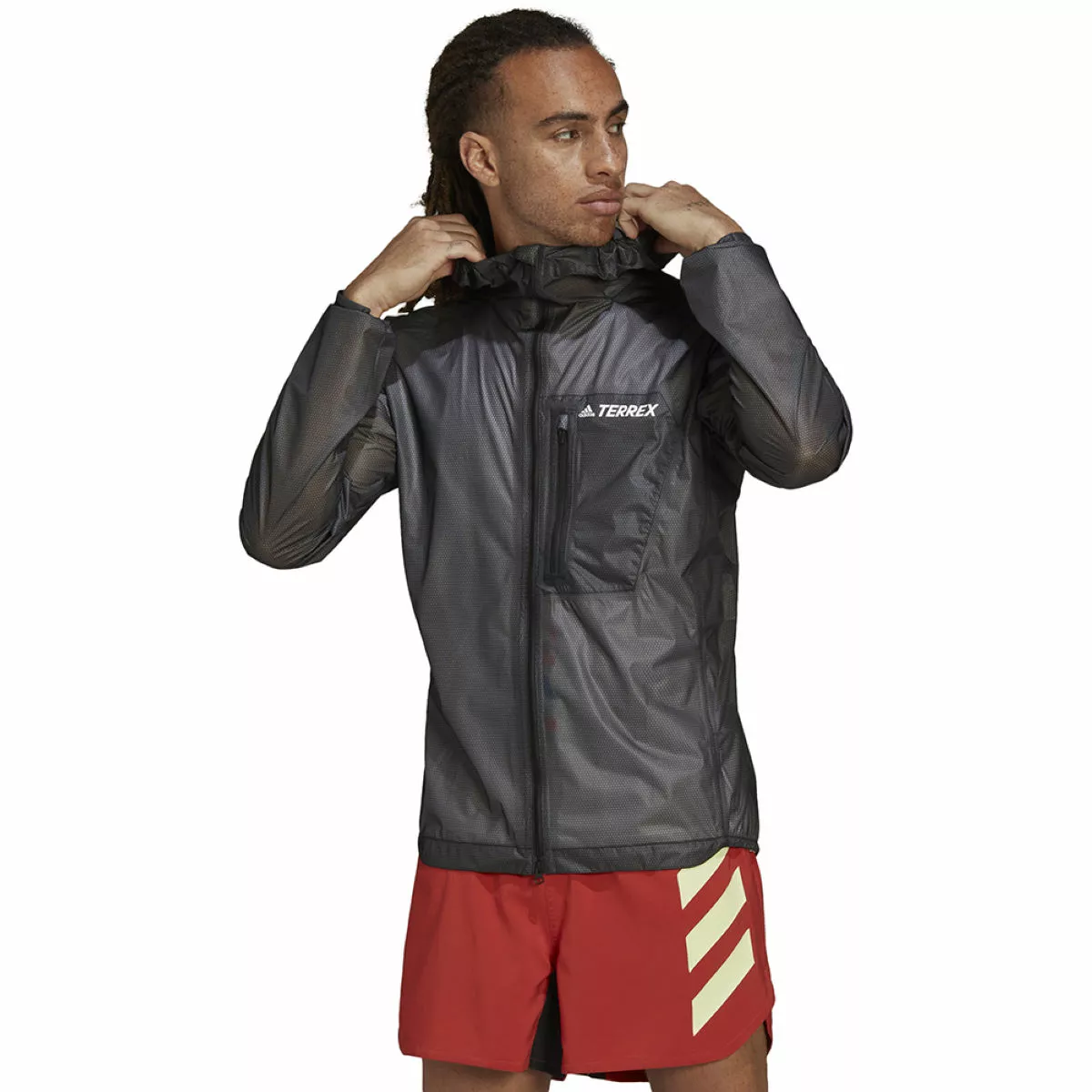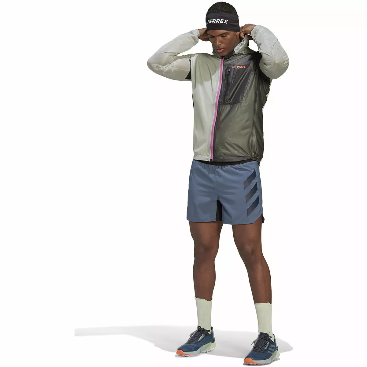 Packed full of user-friendly features, the jacket complete folds up into an integrated Pack It Pocket. The adidas Terrex Agravic Rain Jacket is also fitted with a elasticated hood, hem, and sleeve cuffs – keeping you dry from every angle.