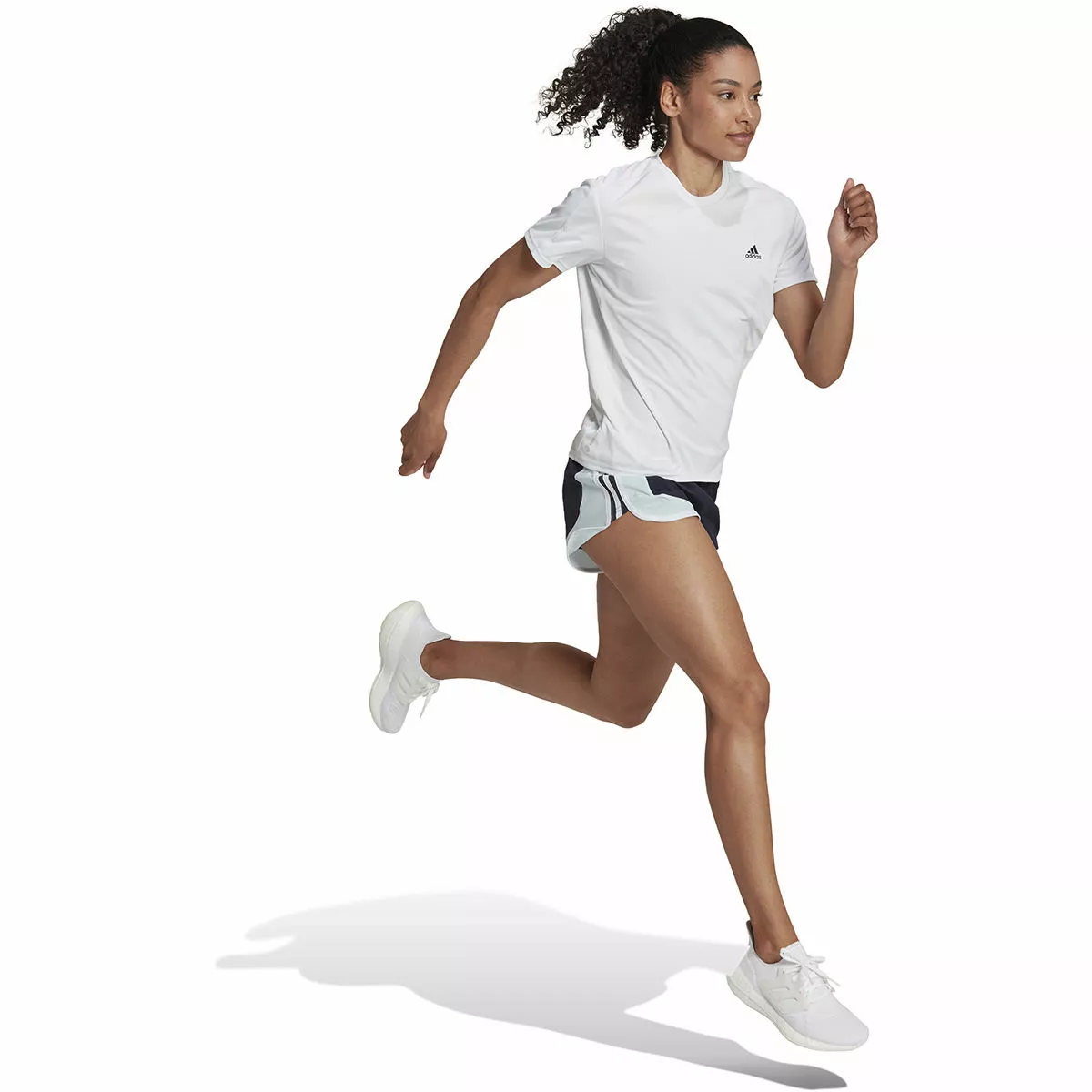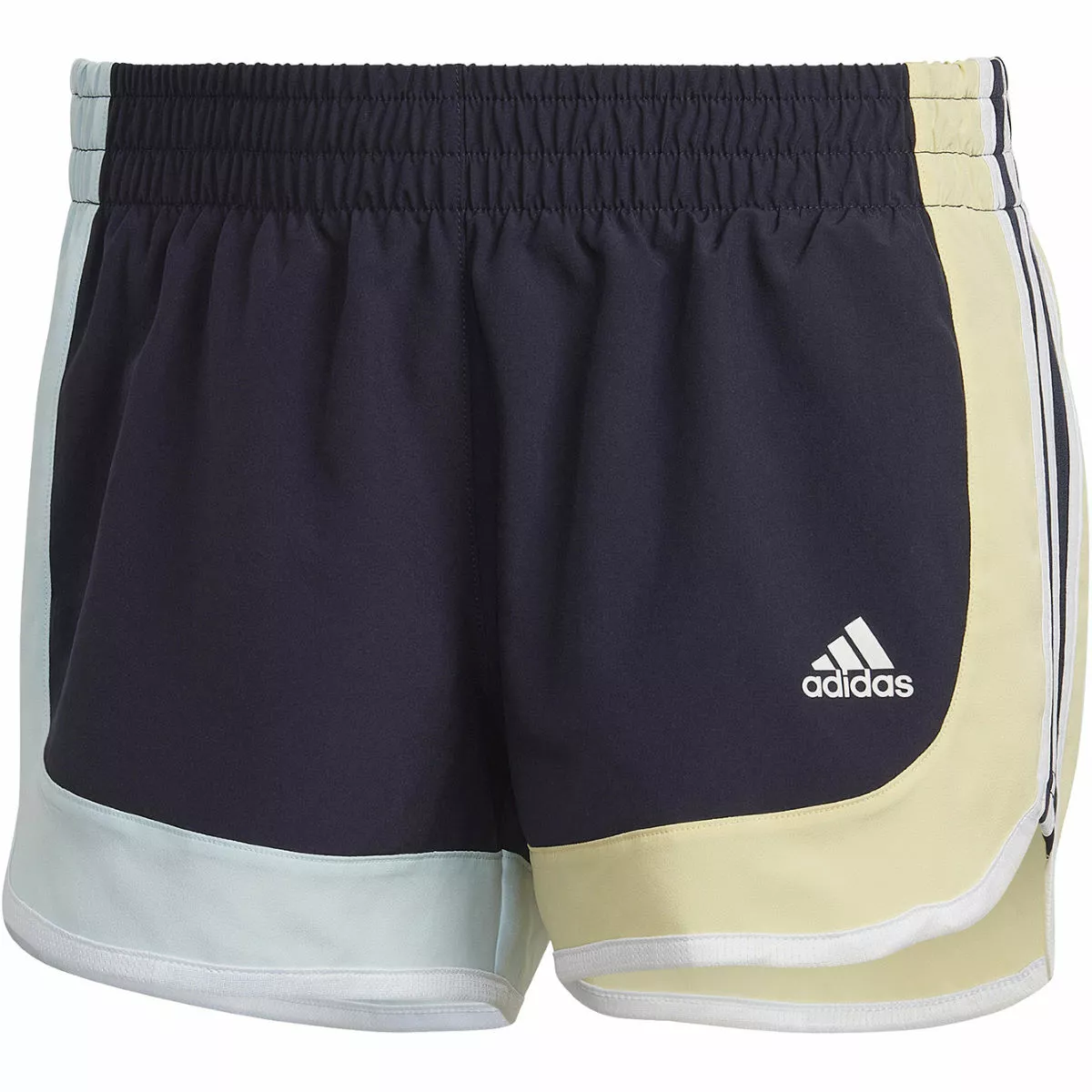 Stay cool and fast in the retro-styled, adidas Women’s Marathon 20 Colourblock Running Shorts. Made utilising AEROREADY technology, these shorts are fast-wicking and highly breathable – allowing air to circulate close to the skin ensuring you stay cool and well ventilated. The drawcord elastic waist provides an adjustable fit for your comfort and the mid-rise construction and inner brief give good coverage. Finished with 360-degree reflectivity so you remain visible in low light and an eye-catching colour-blocked design.