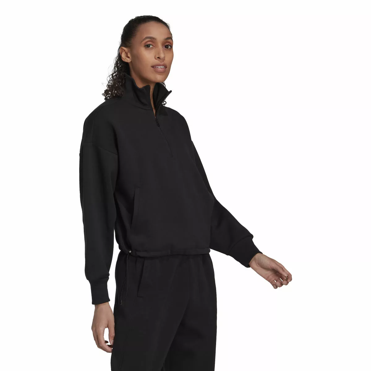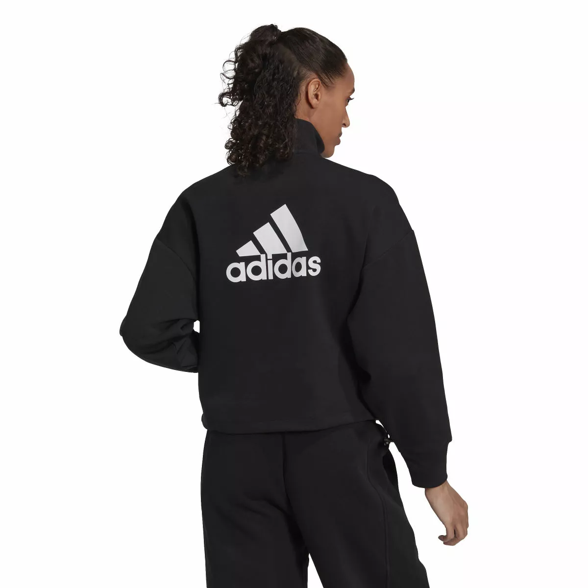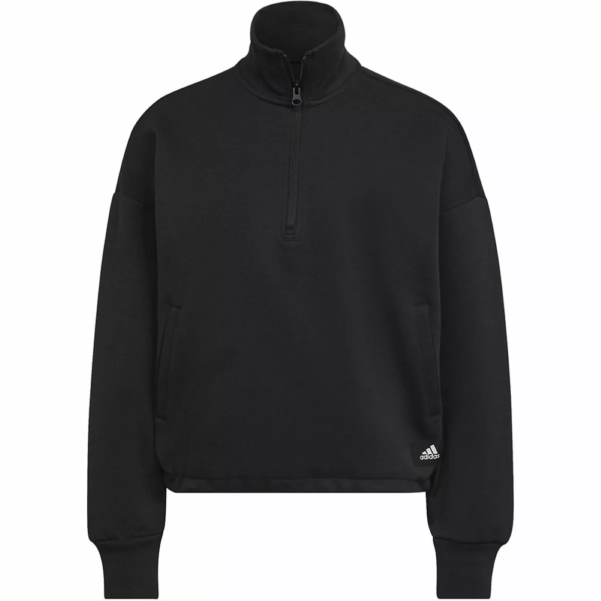 Transition from the gym to hanging out with friends in the stylish and functional adidas Women’s Future Icons Badge of Sport Quarter-Zip Sweatshirt. Cut in a loose fit with a double-knit build to provide warmth and comfort – perfect after a long workout or training session. Featuring a quarter zip design, bungee adjustable hem and ribbed cuffs for a premium fit while the construction supports the Better Cotton Initiative to reduce waste and avoid the larger environmental impact of producing virgin content.