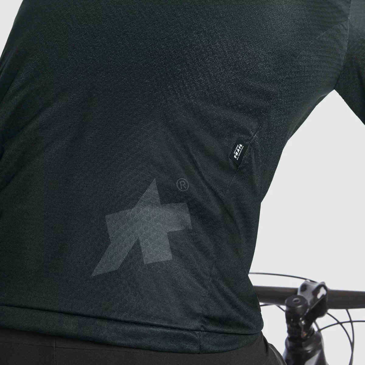 To the body of the jersey, you’ll find Assos’ Triangle textile. The circular-knit design offers plenty of lateral stretch, so you can move freely, but remains stable vertically so you don’t have too much sag or flapping. It’s ultrasoft and yet durable, resisting snags and pulls as you nip through tight gaps and brush past trailside overgrowth. The durability is enhanced via the use of abrasion-resistant dyneRope across the forearms.