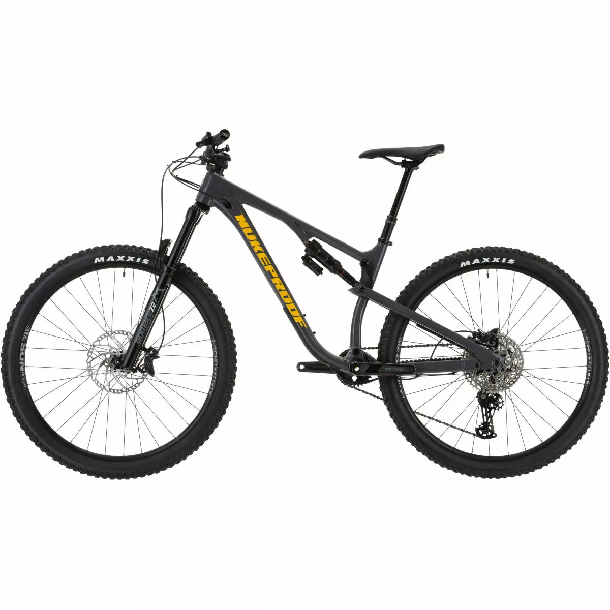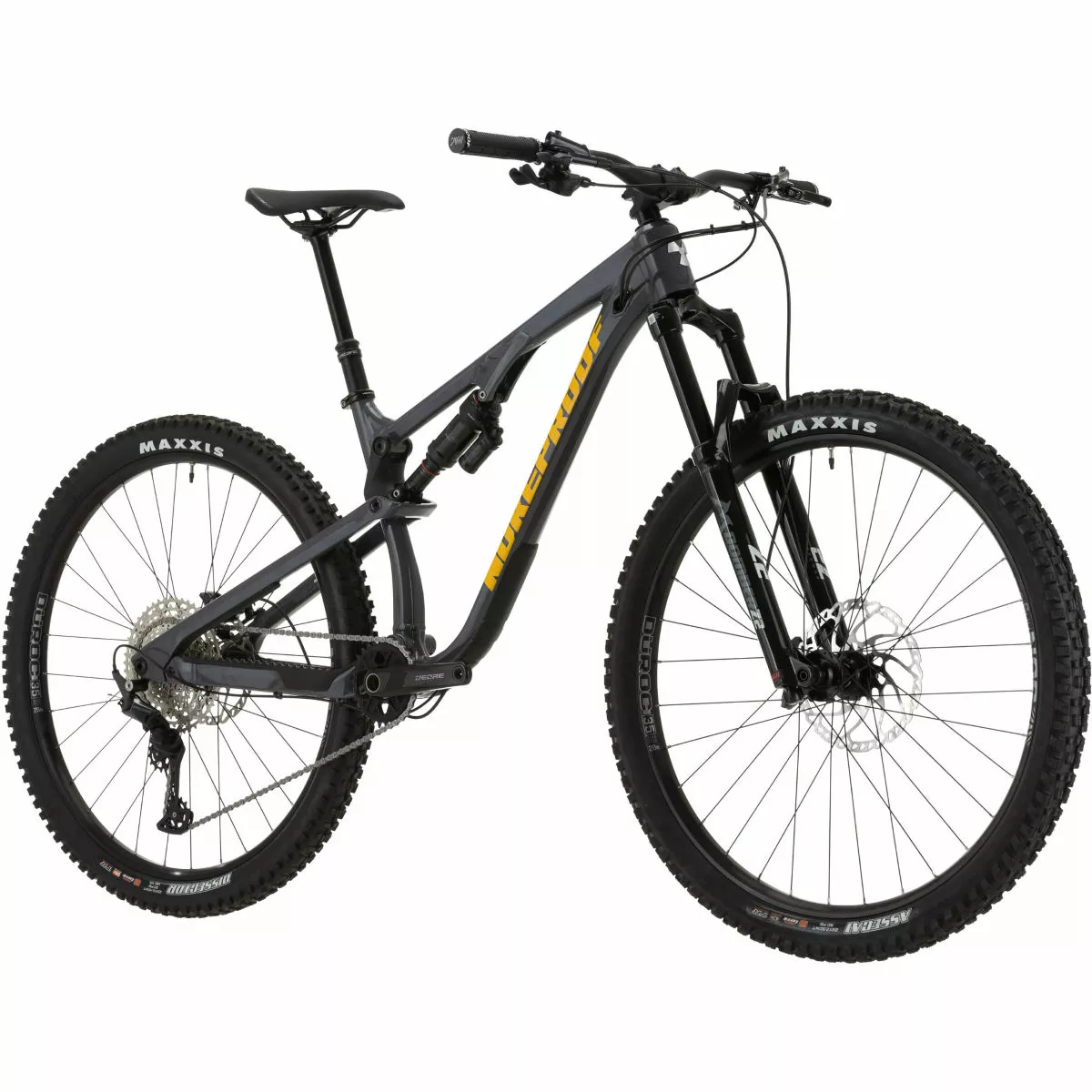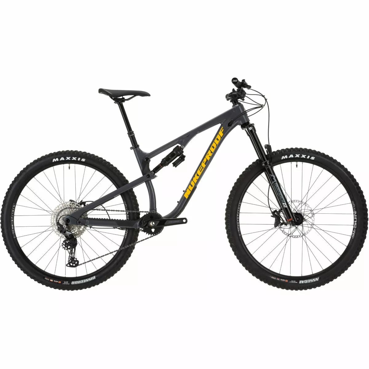 Cuadro: Aleación Nukeproof Reactor 290, recorrido trasero de 130 mm, vainas de asiento de fibra de carbono tejidas de forma unidireccional, enrutamiento interno de cables, Boost, protección de cuadro de goma contorneada 3D Horquilla: Marzocchi Bomber Z2 Boost, 150 mm de recorrido Amortiguador trasero: RockShox Super Deluxe Select R, 210x50mm Transmisión: Shimano Deore de M6100 12 velocidades; Manetas: Shimano Deore M6100-IR; Desviador: Shimano Deore de M6100, SGS 12 velocidades; Platos y bielas: Race Face Ride, biela de 12 velocidades, 30D Frenos: Disco hidráulico Shimano Deore M6120 o SRAM Ruedas: Sun-Ringle Duroc 35 Comp 29″ Boost Cubiertas: Delanteras: Maxxis Assegai 29×2.5″ WT 3C MaxxTerra/EXO+/TR, Traseras: Maxxis Dissector 29×2.4“ WT 3C MaxxTerra/EXO+/TR Peso: 15 kg (mediano, sin cámara) Cuadro: Nukeproof Reactor 290 Alloy, 130mm Travel, custom triple butted hydro-formed tube set for front triangle and chain stays, UD woven carbon fibre Seat stays, ISCG 05 mount, Enduro bearings, Boost Spacing, 3D contoured rubber frame protection Horquilla: Marzocchi Bomber Z2, 150mm, 44mm Offset, BOOST, RAIL Damper, Gloss Black Tubo de dirección: Conificado, 1 1/8 – 1 1/2 Soportes para portabidón: Tubo inferior Enrutado del cableado: Interno Fabricante del grupo: Shimano Número de marchas: 12 Juego de platos: Race Face Ride, 12 Speed Crank, 170mm, 30T, 52mm Chainline Tipo de platos: Plato único Cadena: Shimano Deore M6100 12-Speed Cassette: Shimano Deore M6100 12-Speed (HYPERGLIDE+), 10-51T Tamaño de la rueda: 29″ (622) Cubiertas: Front: Maxxis Assegai 29×2.5″ WT 3C MaxxTerra/EXO+/TR, Rear: Maxxis Dissector 29×2.4″ WT 3C MaxxTerra/EXO+/TR Tipo de freno: Freno de disco hidráulico Frenos: Brakes: Shimano Deore M6120 or SRAM DB8 hydraulic disc; Front Rotor: Shimano 203mm or SRAM, 200mm; Rear Rotor: Shimano 180mm or SRAM, 180mm Cinta de manillar/puños: Nukeproof Sam Hill Signature Manillar: Nukeproof Neutron V2 25mm Rise, Width – M780mm, L800mm, XL800mm Potencia: Nukeproof Neutron AM, 45mm, black Tija de sillín: Brand-X Ascend internal, 31.6mm, M:150mm drop; L:170mm Drop; XL:200mm drop Sillín: Nukeproof, Black Año del modelo: 2022 Peso de la bicicleta: 15kg (Medium, Tubeless) MTB: Sí