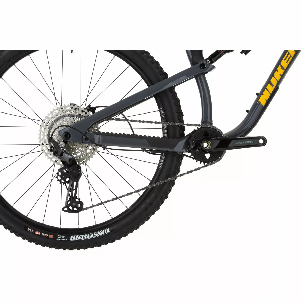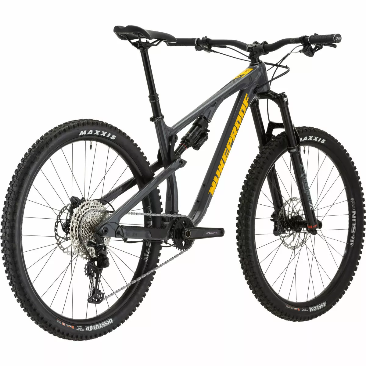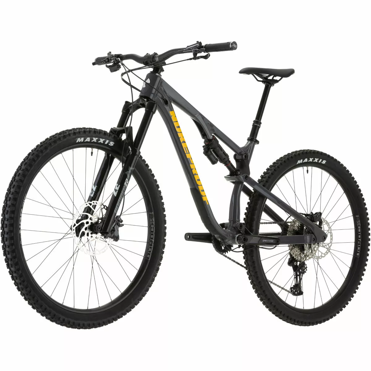 Cuadro: Aleación Nukeproof Reactor 290, recorrido trasero de 130 mm, vainas de asiento de fibra de carbono tejidas de forma unidireccional, enrutamiento interno de cables, Boost, protección de cuadro de goma contorneada 3D Horquilla: Marzocchi Bomber Z2 Boost, 150 mm de recorrido Amortiguador trasero: RockShox Super Deluxe Select R, 210x50mm Transmisión: Shimano Deore de M6100 12 velocidades; Manetas: Shimano Deore M6100-IR; Desviador: Shimano Deore de M6100, SGS 12 velocidades; Platos y bielas: Race Face Ride, biela de 12 velocidades, 30D Frenos: Disco hidráulico Shimano Deore M6120 o SRAM Ruedas: Sun-Ringle Duroc 35 Comp 29″ Boost Cubiertas: Delanteras: Maxxis Assegai 29×2.5″ WT 3C MaxxTerra/EXO+/TR, Traseras: Maxxis Dissector 29×2.4“ WT 3C MaxxTerra/EXO+/TR Peso: 15 kg (mediano, sin cámara) Cuadro: Nukeproof Reactor 290 Alloy, 130mm Travel, custom triple butted hydro-formed tube set for front triangle and chain stays, UD woven carbon fibre Seat stays, ISCG 05 mount, Enduro bearings, Boost Spacing, 3D contoured rubber frame protection Horquilla: Marzocchi Bomber Z2, 150mm, 44mm Offset, BOOST, RAIL Damper, Gloss Black Tubo de dirección: Conificado, 1 1/8 – 1 1/2 Soportes para portabidón: Tubo inferior Enrutado del cableado: Interno Fabricante del grupo: Shimano Número de marchas: 12 Juego de platos: Race Face Ride, 12 Speed Crank, 170mm, 30T, 52mm Chainline Tipo de platos: Plato único Cadena: Shimano Deore M6100 12-Speed Cassette: Shimano Deore M6100 12-Speed (HYPERGLIDE+), 10-51T Tamaño de la rueda: 29″ (622) Cubiertas: Front: Maxxis Assegai 29×2.5″ WT 3C MaxxTerra/EXO+/TR, Rear: Maxxis Dissector 29×2.4″ WT 3C MaxxTerra/EXO+/TR Tipo de freno: Freno de disco hidráulico Frenos: Brakes: Shimano Deore M6120 or SRAM DB8 hydraulic disc; Front Rotor: Shimano 203mm or SRAM, 200mm; Rear Rotor: Shimano 180mm or SRAM, 180mm Cinta de manillar/puños: Nukeproof Sam Hill Signature Manillar: Nukeproof Neutron V2 25mm Rise, Width – M780mm, L800mm, XL800mm Potencia: Nukeproof Neutron AM, 45mm, black Tija de sillín: Brand-X Ascend internal, 31.6mm, M:150mm drop; L:170mm Drop; XL:200mm drop Sillín: Nukeproof, Black Año del modelo: 2022 Peso de la bicicleta: 15kg (Medium, Tubeless) MTB: Sí
