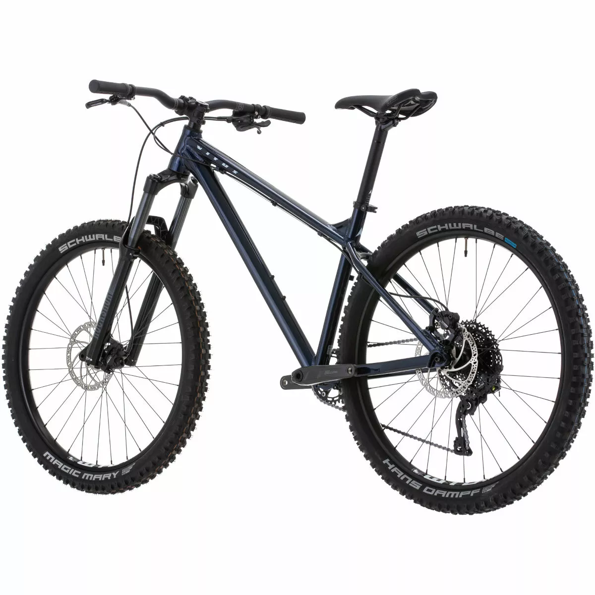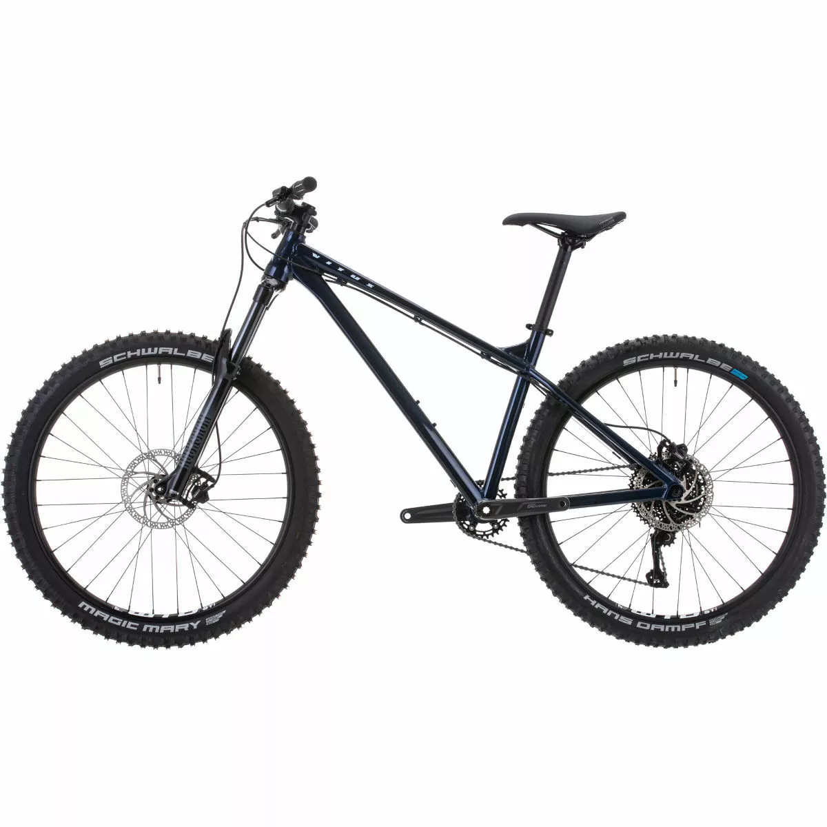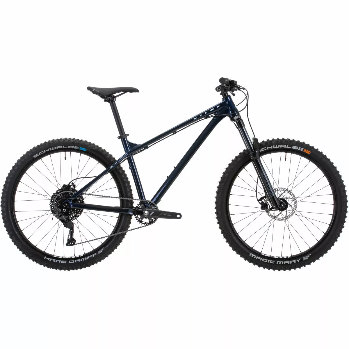 La Sentier 27 cuenta con un cuadro de aluminio fuerte y liviano que está equipado con increíbles componentes. Con horquillas de suspensión RockShox Recon de 140 mm de recorrido que te brindan una tracción que domina el terreno y un grupo Shimano Deore de 1×10 velocidades con un cassette de 11-46 dientes de amplio rango y frenos de disco hidráulicos, esta bicicleta es versátil para andar en senderos de una sola pista y dar vueltas en tu parque de bicicletas local. También rueda sobre llantas Tubeless Ready WTB i30 TCS envueltas en cubiertas sin cámara de compuesto Addix, las Schwalbe Magic Mary y Hans Dampf de rodadura rápida y alto agarre.