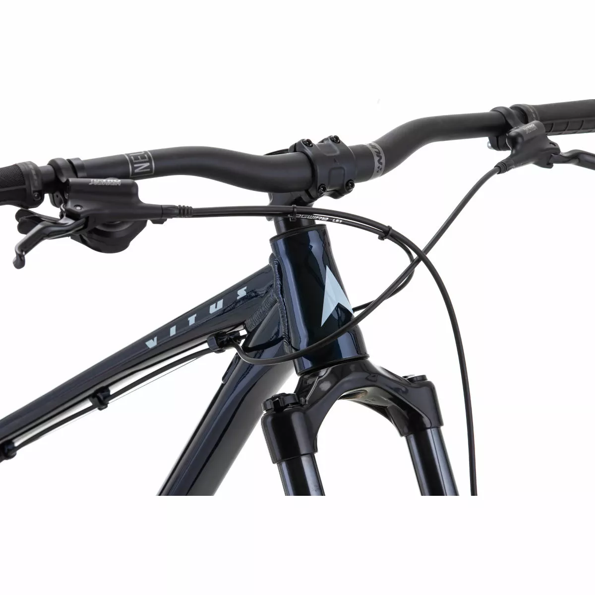 Manillar: de doble altura Nukeproof Neutron V2, aleación 6061, elevación de 25 mm, angulo hacia atrás de 9°, diámetro de abrazadera de 31,8 mm, S y M: 760 mm de ancho, largo: 780 mm de ancho, XL: 800 mm de ancho