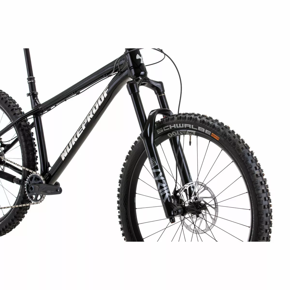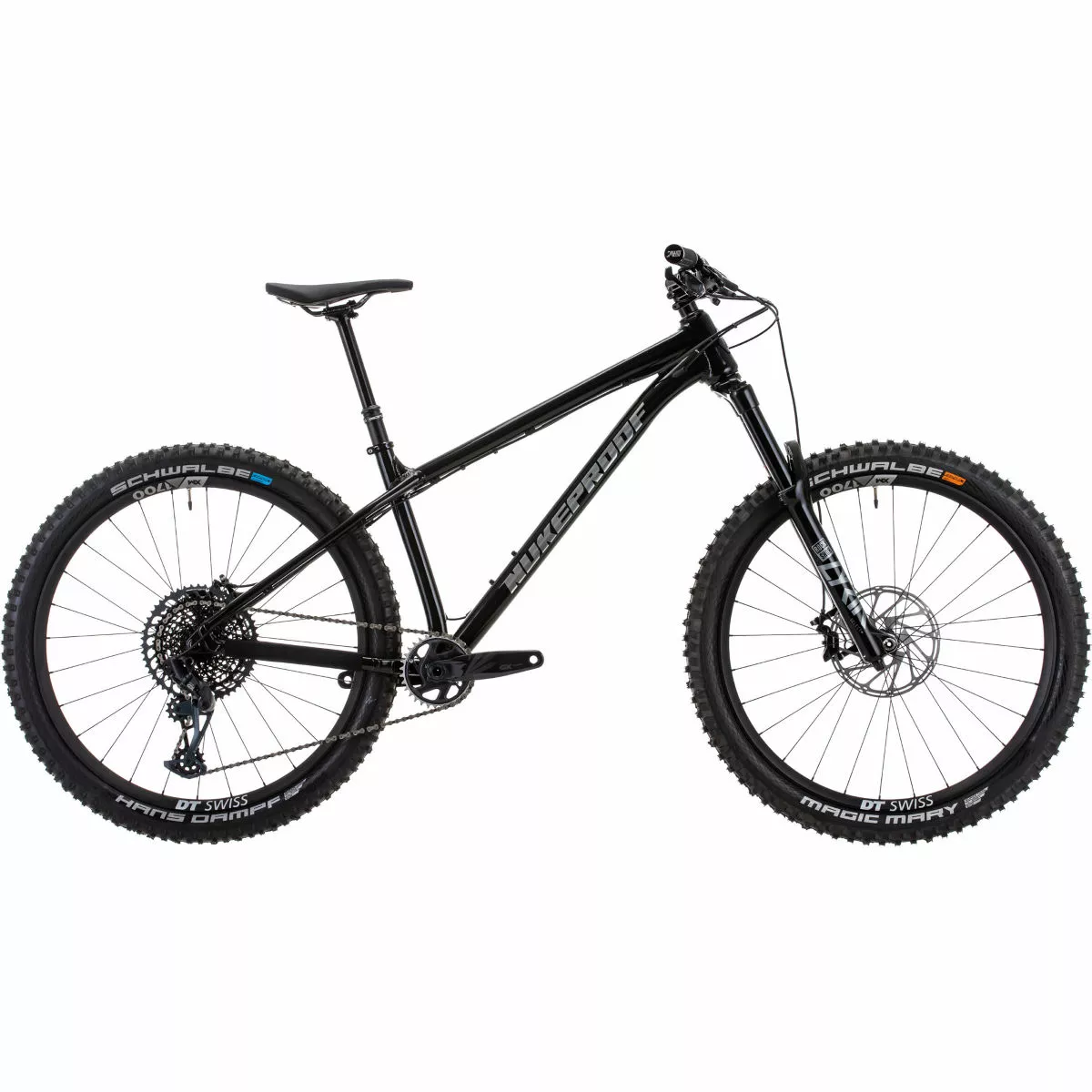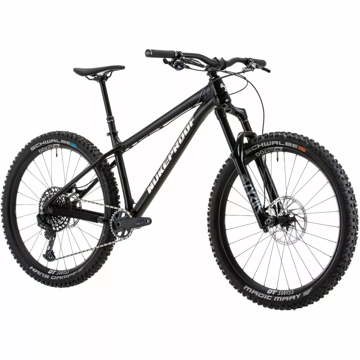 Cuadro: Nukeproof Scout 275, aleación personalizada hidro-formada de triple sección variable Horquilla: RockShox Lyrik Select+ Charger 2.1 RC 150 mm Juego de ruedas: DT Swiss E1700 SPLINE 30, 27.5“ Cubiertas: Delantero: Schwalbe Magic Mary Snakeskin, TL Easy, E-25, Addix Soft, 27,5 X 2,35“; Trasero: Schwalbe Hans Dampf, piel de serpiente, TL Easy, Addix Speedgrip. 27,5×2.6“ Bielas/platos: SRAM GX Eagle, 12 velocidades, DUB, 170 mm, 32T, Boost Cambio trasero: SRAM GX Eagle 12 velocidades Cassette: SRAM X1275 Eagle de 12 velocidades, 10-52D Frenos: Guía SRAM RE Peso: 13,5 kg (mediano/sin cámara) Cuadro: Nukeproof Scout 275, custom triple butted hydro-formed Alloy, internal cable routing for dropper seat posts, ISCG 05 mount, threaded 73mm BB, Boost 148mm rear axle spacing, 3D Contoured Rubber Frame Protection for Down Tube, Seat Stay and Chain Stay Horquilla: RockShox Lyrik Select+ Charger 2.1 RC 150mm, 46mm Offset, BOOST, Debonair, Gloss Black Tubo de dirección: Conificado (otro) Soportes para portabidón: Tubo inferior Enrutado del cableado: Interno Fabricante del grupo: Shimano Número de marchas: 12 Juego de platos: SRAM GX Eagle, 12-Speed, DUB, 170mm, 32T, Boost Tipo de platos: Plato único Cadena: SRAM GX Eagle, 12-speed, Power-Lock Cassette: SRAM XG1275 Eagle, 12-Speed, 10-52T Tamaño de la rueda: 27,5″ (650b) Cubiertas: Front: Schwalbe Magic Mary, Snakeskin, TL Easy, Addix Soft, 27.5×2.6″; Rear: Schwalbe Hans Dampf, Snakeskin, TL Easy, Addix Speedgrip. 27.5×2.6″ Tipo de freno: Freno de disco hidráulico Frenos: SRAM Guide RE Cinta de manillar/puños: Nukeproof Sam Hill Signature Manillar: Nukeproof Horizon V2 25mm Rise, Width – S780mm, M780mm, L800mm, XL800mm Potencia: Nukeproof Horizon, 45mm, Black Tija de sillín: Brand X Ascend, S:125mm drop; M:150mm drop; L:170mm drop; XL:200mm Sillín: Nukeproof Horizon SL, Black/Grey Año del modelo: 2022 Peso de la bicicleta: 13.5Kg (Medium / Tubeless) MTB: Sí
