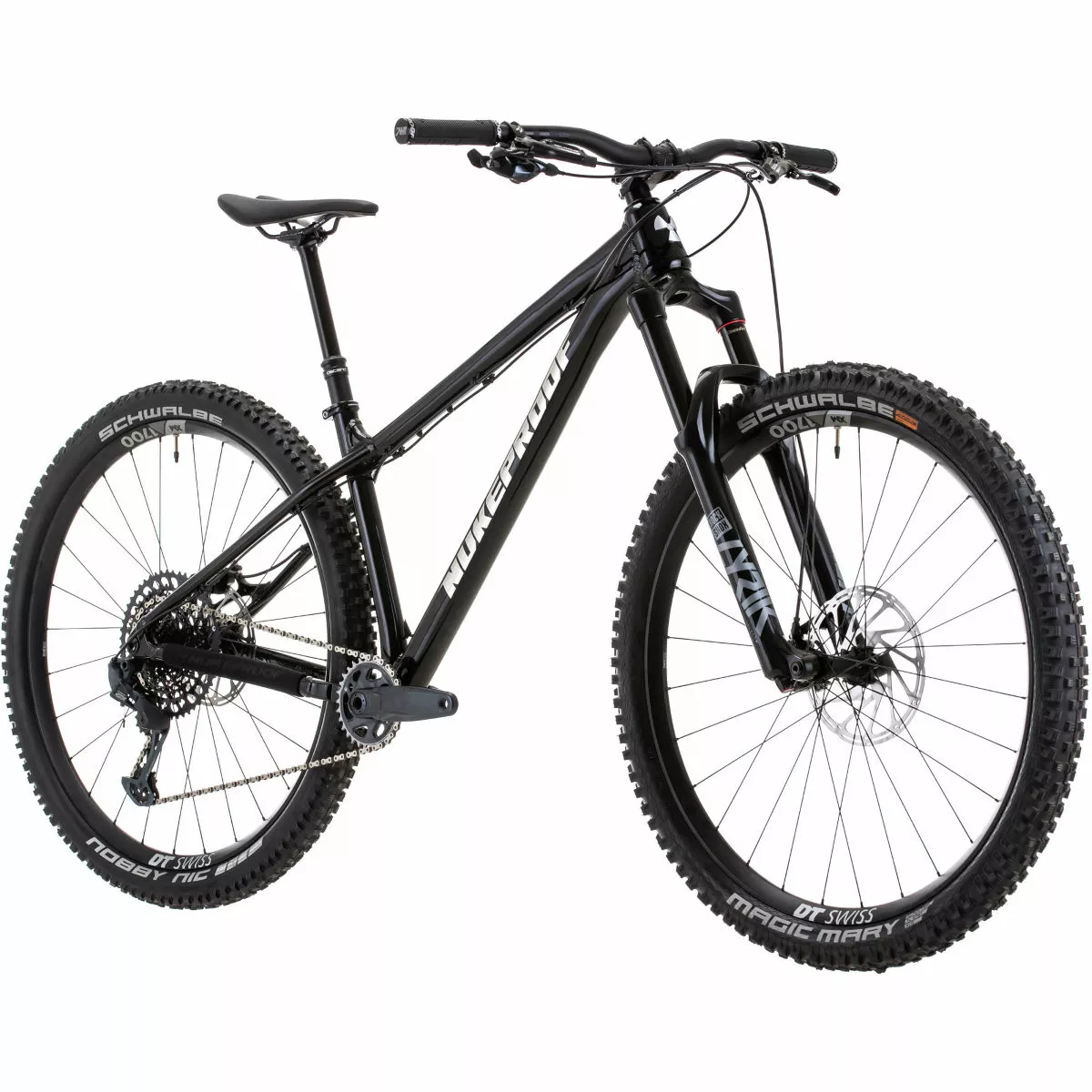 Cuadro: Nukeproof Scout 275, aleación personalizada hidro-formada de triple sección variable Horquilla: RockShox Lyrik Select+ Charger 2.1 RC 150 mm Juego de ruedas: DT Swiss E1700 SPLINE 30, 29“ Cubiertas: Delantero: Schwalbe Magic Mary Snakeskin, TL Easy, E-2,35, Addix Soft, 29 X 2,35“; Trasero: Schwalbe Nobby Nic, DD, Raceguard, TL Easy, Addix, 29×2.35“ Bielas/platos: SRAM GX Eagle, 12 velocidades, DUB, 170 mm, 32T, Boost Cambio trasero: SRAM GX Eagle 12 velocidades Cassette: SRAM X1275 Eagle de 12 velocidades, 10-52D Frenos: Guía SRAM RE Cuadro: Nukeproof Scout 275, custom triple butted hydro-formed Alloy, internal cable routing for dropper seat posts, ISCG 05 mount, threaded 73mm BB, Boost 148mm rear axle spacing, 3D Contoured Rubber Frame Protection for Down Tube, Seat Stay and Chain Stay Horquilla: RockShox Lyrik Select+ Charger 2.1 RC 150mm, 42mm Offset, BOOST, Debonair, Gloss Black Tubo de dirección: Conificado (otro) Soportes para portabidón: Tubo inferior Enrutado del cableado: Interno Fabricante del grupo: SRAM Número de marchas: 12 Juego de platos: SRAM GX Eagle, 12-Speed, DUB, 170mm, 32T, Boost Tipo de platos: Plato único Cadena: SRAM GX Eagle, 12-speed, Power-Lock Cassette: SRAM XG1275 Eagle, 12-Speed, 10-52T Tamaño de la rueda: 29″ (622) Cubiertas: Front: Schwalbe Magic Mary, Snakeskin, TL Easy, Addix Soft, 29×2.35″; Rear: Schwalbe Nobby Nic, DD, Raceguard, TL Easy, Addix, 29×2.35″ Tipo de freno: Freno de disco hidráulico Frenos: SRAM Guide RE Cinta de manillar/puños: Nukeproof Sam Hill Signature Manillar: Nukeproof Horizon V2 25mm Rise, Width – M780mm, L800mm, XL800mm, XXL800mm Potencia: Nukeproof Horizon, 45mm, Black Tija de sillín: Brand X Ascend, M:150mm drop; L:170mm drop; XL/XXL:200mm Sillín: Nukeproof Horizon SL, Black/Grey Año del modelo: 2022 MTB: Sí