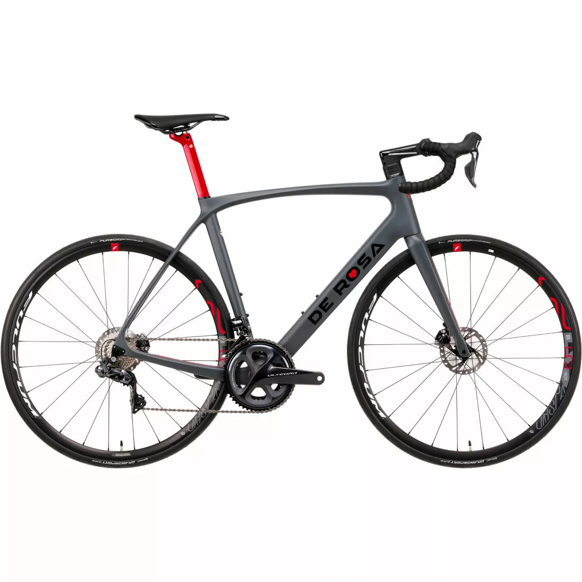 Sentado en el pináculo de la línea de carreras de De Rosa durante muchos años, su modelo Idol está diseñado con fibra Super Hi-Modulus con una mezcla de T1000 y T800. Esta construcción logra la mayor rigidez estructural y absorción de vibraciones sin dejar de ser ligera. Además, esta bicicleta está equipada con una transmisión electrónica Shimano Ultegra Di2 que proporciona una precisión de cambio de marcha rápida, suave y confiable. Y está equipado con frenos de disco hidráulicos Ultegra, que le brindan el máximo control de tu impulso en todas las condiciones climáticas. Finalmente, esta excepcional bicicleta de carrera de carretera va sobre ruedas Fulcrum Racing 500 con cubiertas Continental Grand Sport Race para lo último en tracción, ritmo y agarre.