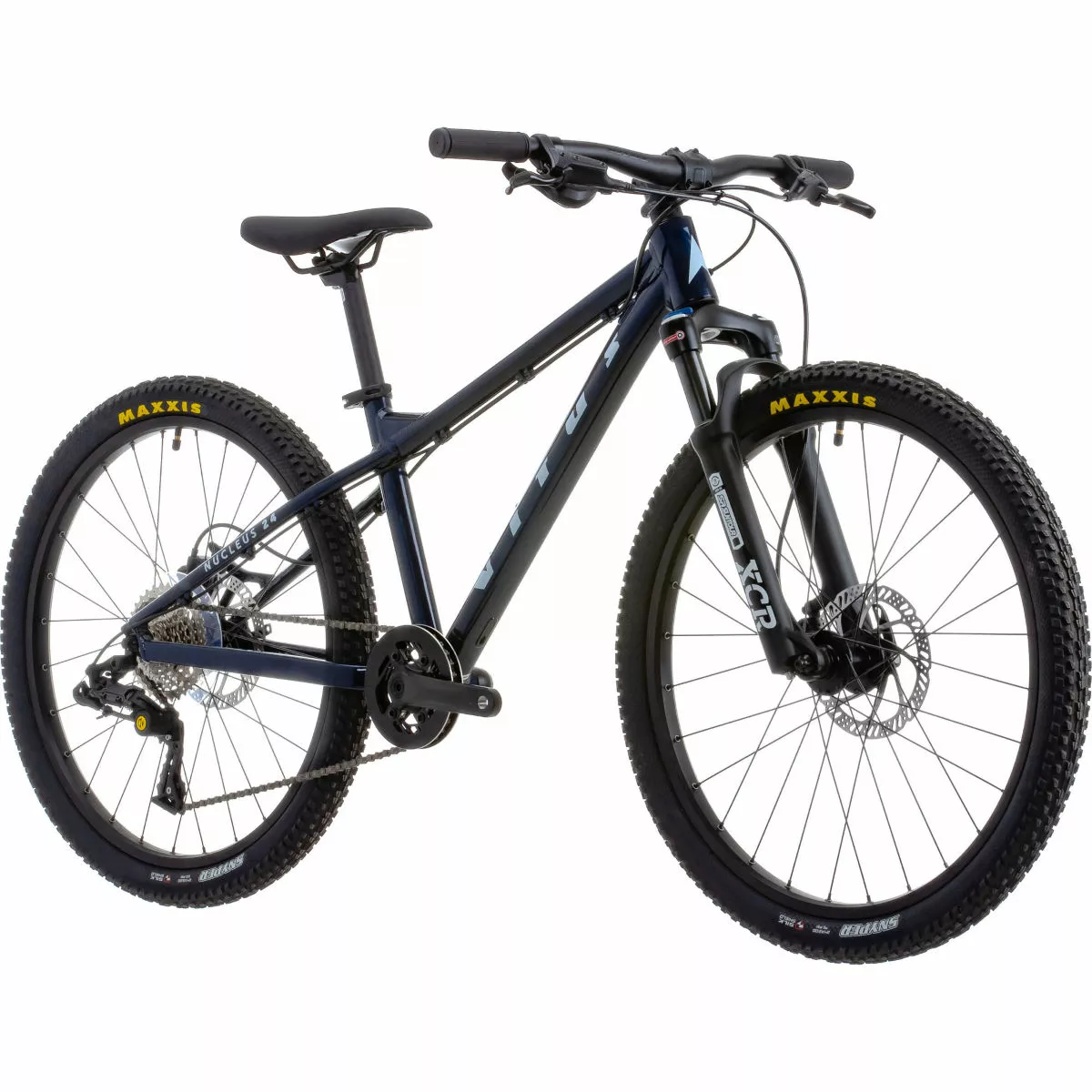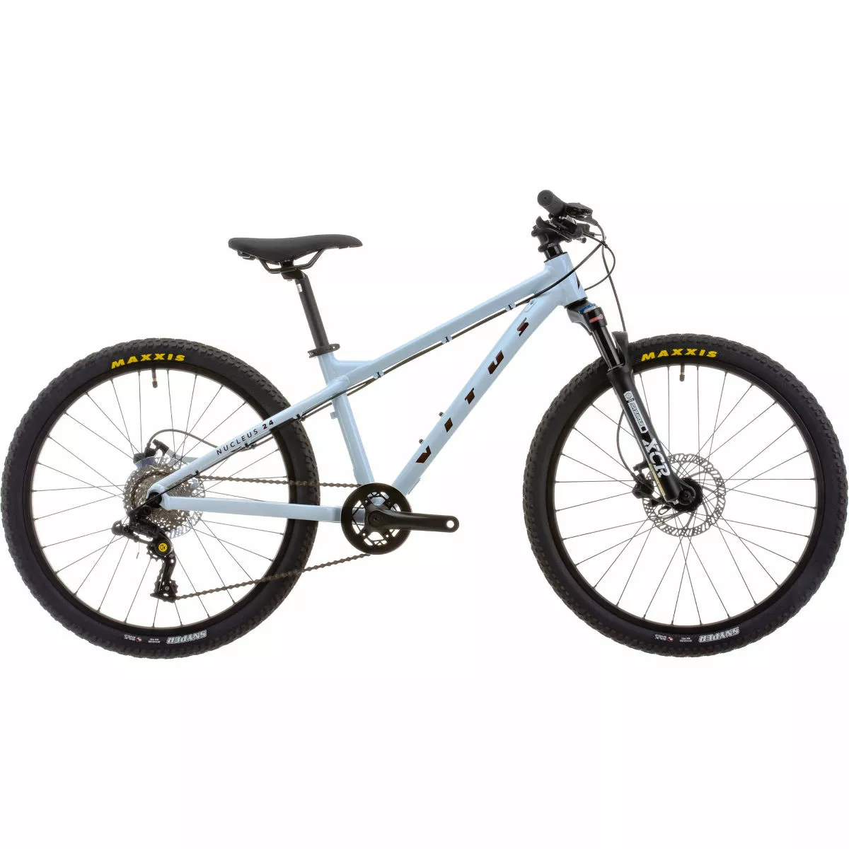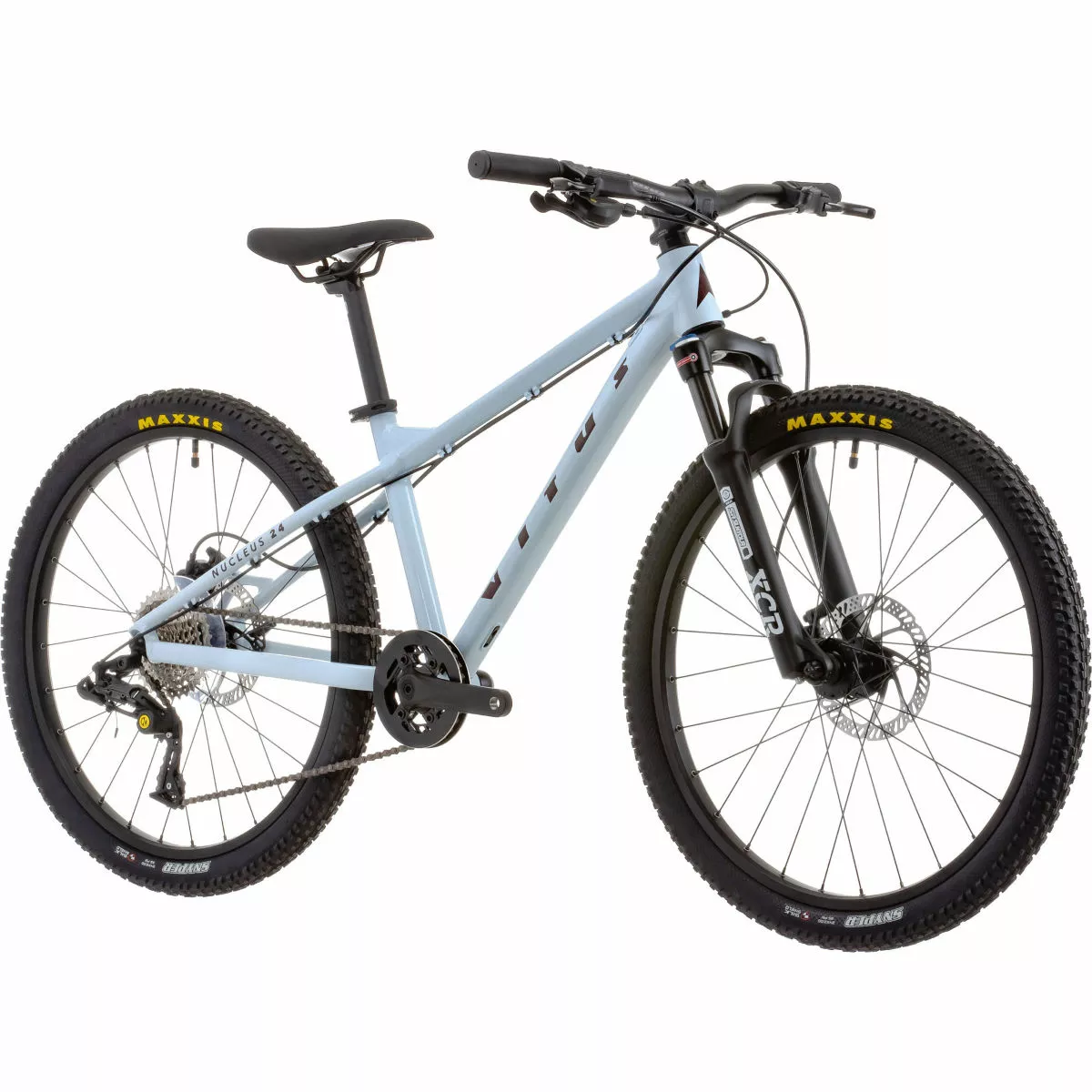Cuadro: Aluminio Nucleus – Rueda de 24 Horquilla: Horquillas neumáticas Suntour XCR-DS-LO, 60 mm de recorrido Juego de ruedas: Vitus, 24“, freno de disco de 6 pernos, buje libre HG, QR delantero de 100 mm x 9 mm, QR trasero de 135 mm x 9 mm Cubiertas: Maxxis Rekon, 24″ x 2,2“ Bielas/platos: Samox, Biela 140mm, 30T Frenos: Freno de disco Tektro HD-M276, hidráulico, ajuste de alcance Desviador trasero: Box Four 8, 8 velocidades con embrague Piñón libre: Sunrace Csm66 11-34D 8 velocidades Peso: 12 kg Cuadro: Nucleus Aluminium – 24″ Wheel, BSA threaded BB, IS disc brake mounts, 135mm x 9mm QR Axle Horquilla: Suntour XCR-DS-LO Air Forks, 60mm travel, IS Mount, 100mm x 9mm QR Axle, Lock-Out, 1 1/8″ Steerer Número de marchas: 8 Juego de platos: Samox, 140mm Crank Arm, 30T, Double Chain Guard, Reduced Q Factor Cadena: Box Four 8, 8 Speed Cassette: Sunrace CSM66, 11-34T, 8 Speed Tamaño de la rueda: 24″ (507) Cubiertas: Maxxis Snyper 24″ x 2.0″ Frenos: Tektro HD-M275 Disc Brake, Hydraulic, Reach Adjust or Clarks M2 Disc Brake, Hydraulic, Reach Adjust; Rotors: Tektro TR160 or Clarks M2, Front: 160mm, Rear: 160mm Cinta de manillar/puños: Vitus, 110mm, Closed End Manillar: Vitus 6061 Aluminium, 15mm Rise, 9 degree Back Sweep, 620mm Wide Potencia: Vitus 6061 Aluminium, 40mm Length, +/- 3 degree Tija de sillín: Vitus 6061 Aluminium, 27.2mm x 250mm, 20mm Offset Sillín: Vitus, Kids Specific, Steel Rail Año del modelo: 2022 Peso de la bicicleta: 12 kg