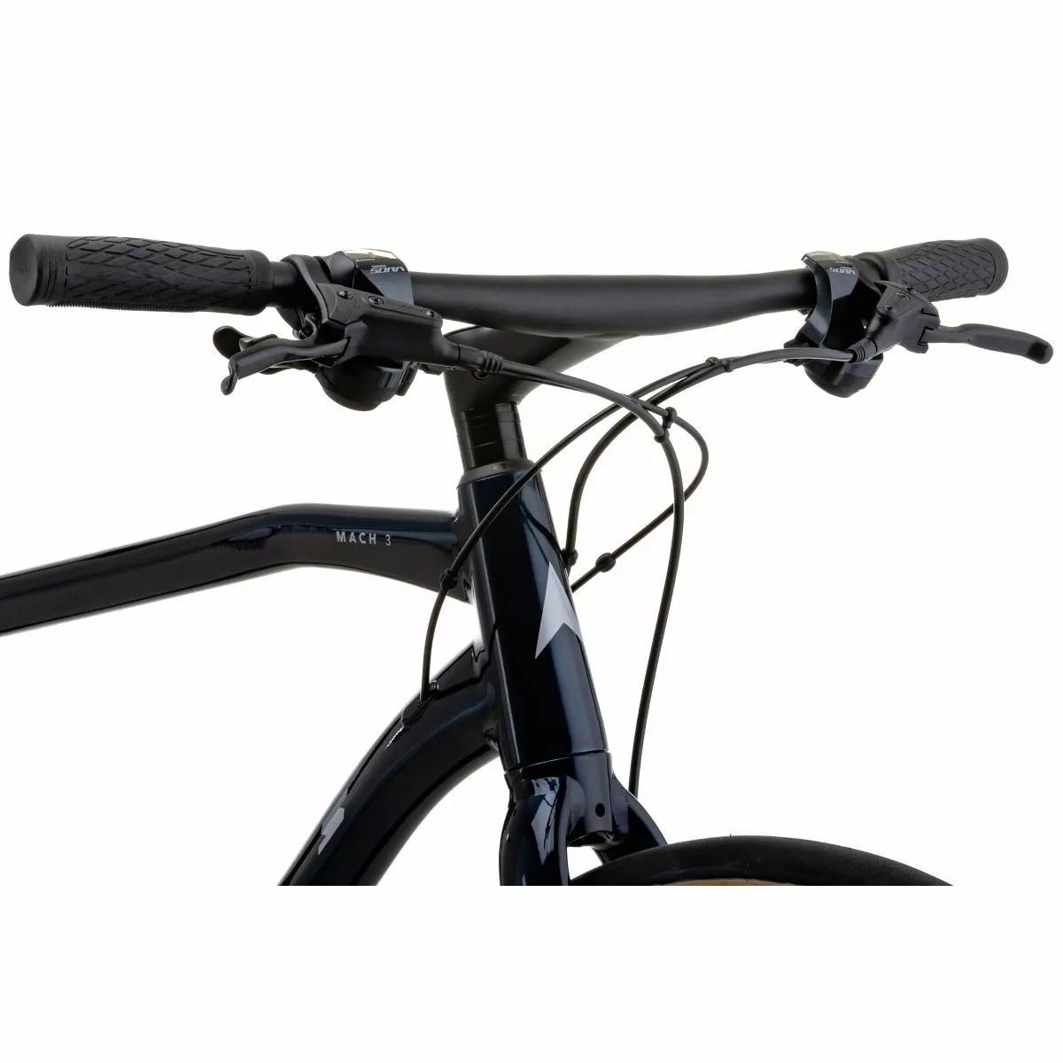Las cubiertas cómodas y de gran volumen son la elección perfecta para vías de ciclismo, caminos rurales o amplios senderos forestales. La adición de ojales para el guardabarros, enrutamiento interno de cables y soportes para alforjas hacen que la Mach-3 sea una excelente opción para andar durante todo el año y viajar sin estrés. El rendimiento está respaldado por un cuadro de aluminio ligero y elegante que cuenta con un llamativo tubo superior retorcido, diseñado para reducir la altura de paso para cuando quieras dejar la ropa deportiva en casa y salir a andar con ropa normal. Hemos seleccionado a propósito componentes fiables y de calidad, que incluyen la potencia y el manillar de una pieza más recientes con empuñaduras ergonómicas para mantener el peso bajo, por lo que la bicicleta requiere poco mantenimiento y se siente tranquilizadoramente deportiva.