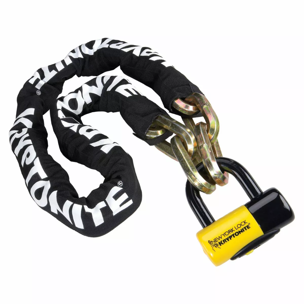 Los eslabones de la cadena, de 14 mm y seis caras, están elaborados a partir de manganeso y boro sometidos a termotratamiento triple para una resistencia máxima La estrechura de la cara interna de los eslabones individuales protege la cadena frente a los intentos de palanca Incluye un cierre de disco New York de seguridad máxima con grillete de acero templado de 14 mm Travesaño con revestimiento de acero templado para mayor seguridad Mecanismo de bloqueo de cerrojo doble para una gran potencia de sujeción Tapa antipolvo deslizante que protege el cilindro Cubierta de protección de nailon resistente para evitar rayaduras en el resto de elementos 3 llaves: una iluminada con una bombilla de alta intensidad y pila reemplazable Aprobado según la clasificación estándar Oro de Sold Secure