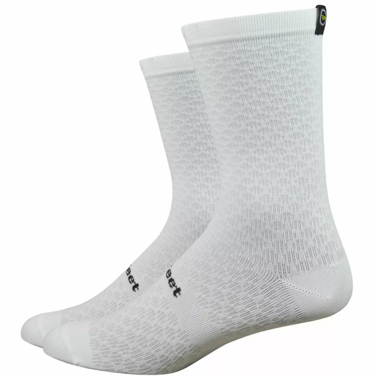 Hilo de poliéster de filamento extruido: sensación más lisa y suave a la vez que ahorra peso Transpirable y absorbente de humedad, diseñado para secarse rápidamente dentro de las zapatillas de ciclismo ajustadas de forma segura Delgado, liviano y compresivo para brindar soporte y un ajuste seguro en el pie Costura imperceptible en la puntera Lavar a máquina en frío, secar a temperatura baja. Sin lejía, suavizantes o detergentes fuertes 50% Nailon, 39% Poliéster, 11% Lycra Ciudad: Sí Carretera: Sí