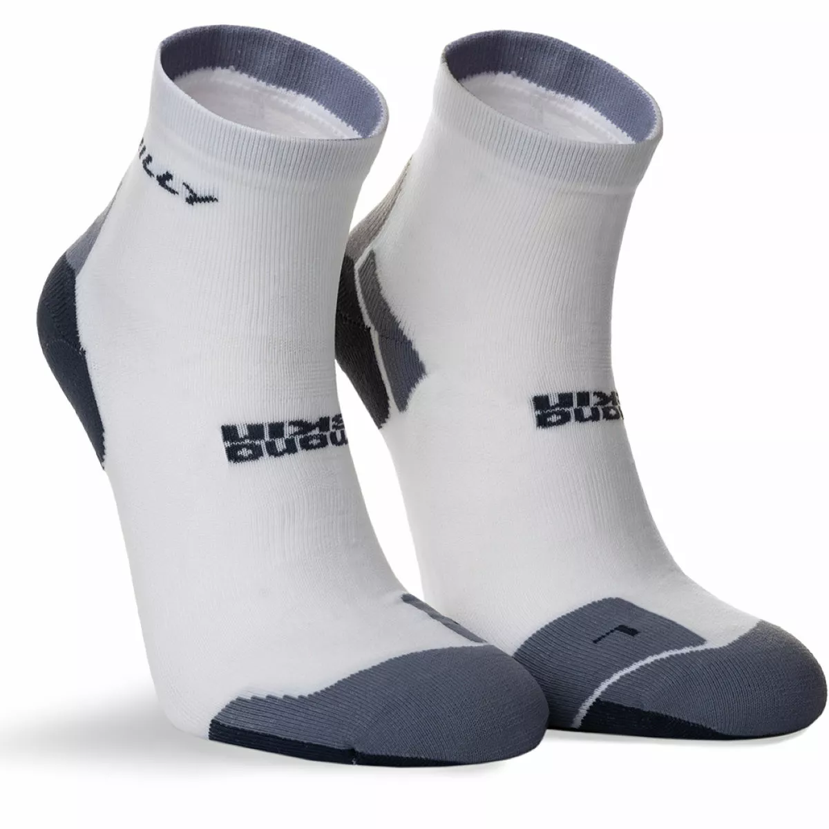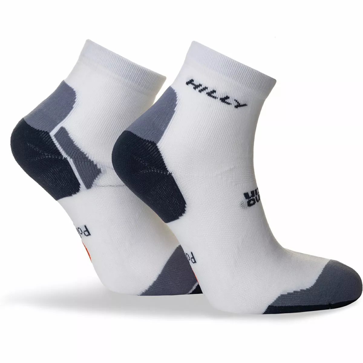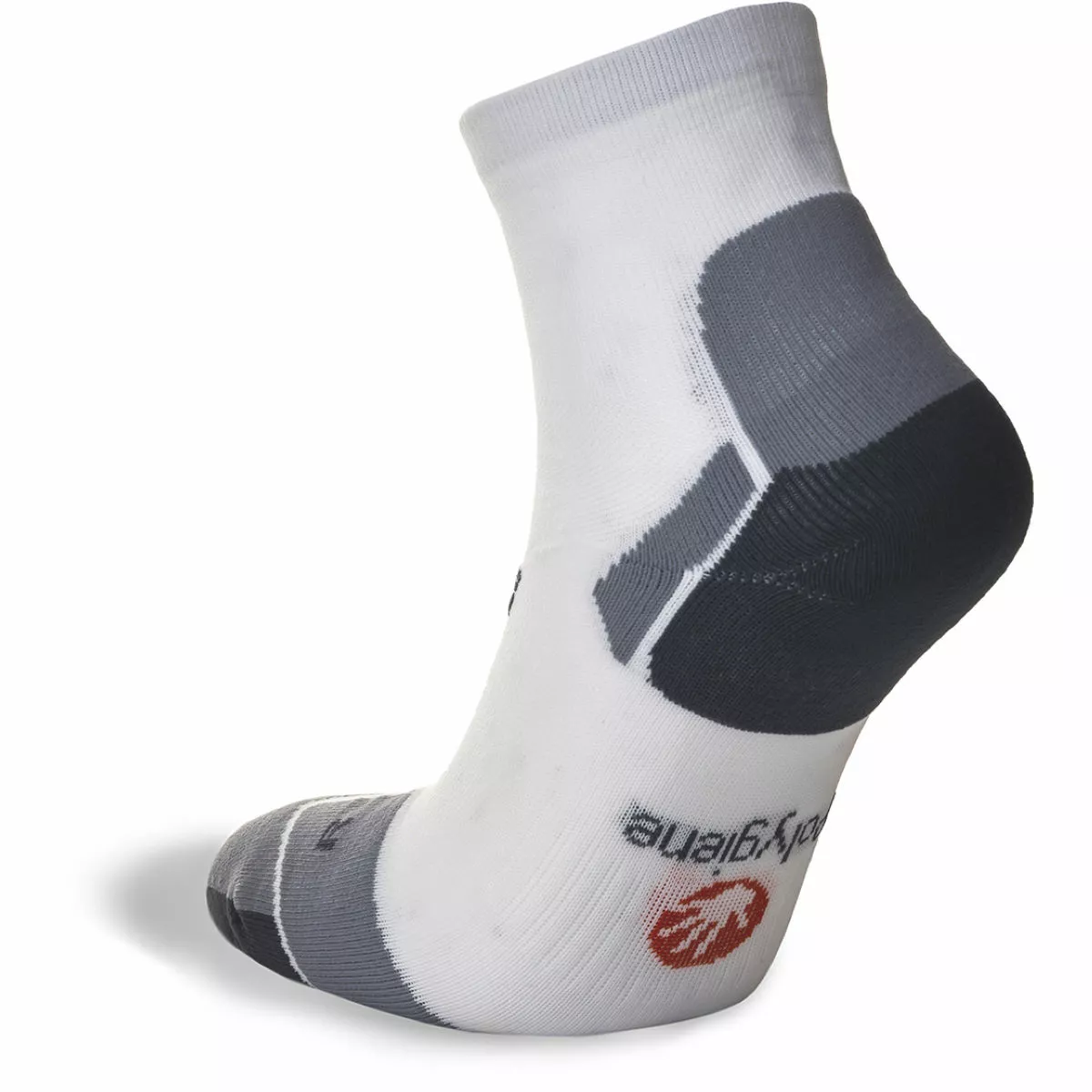 Calcetín tobillero acolchado de grosor medio Tratamiento antimicrobiano Ventilaciones de aire en la parte superior que ayudan a mantener los pies frescos Sección de agarre en el puente del pie y talón en forma de «Y» para un ajuste óptimo Lycra® Sport para mayor elasticidad y recuperación Elaboración de puntera con costuras planas para evitar las ampollas 97% Poliamida, 3% Elastano