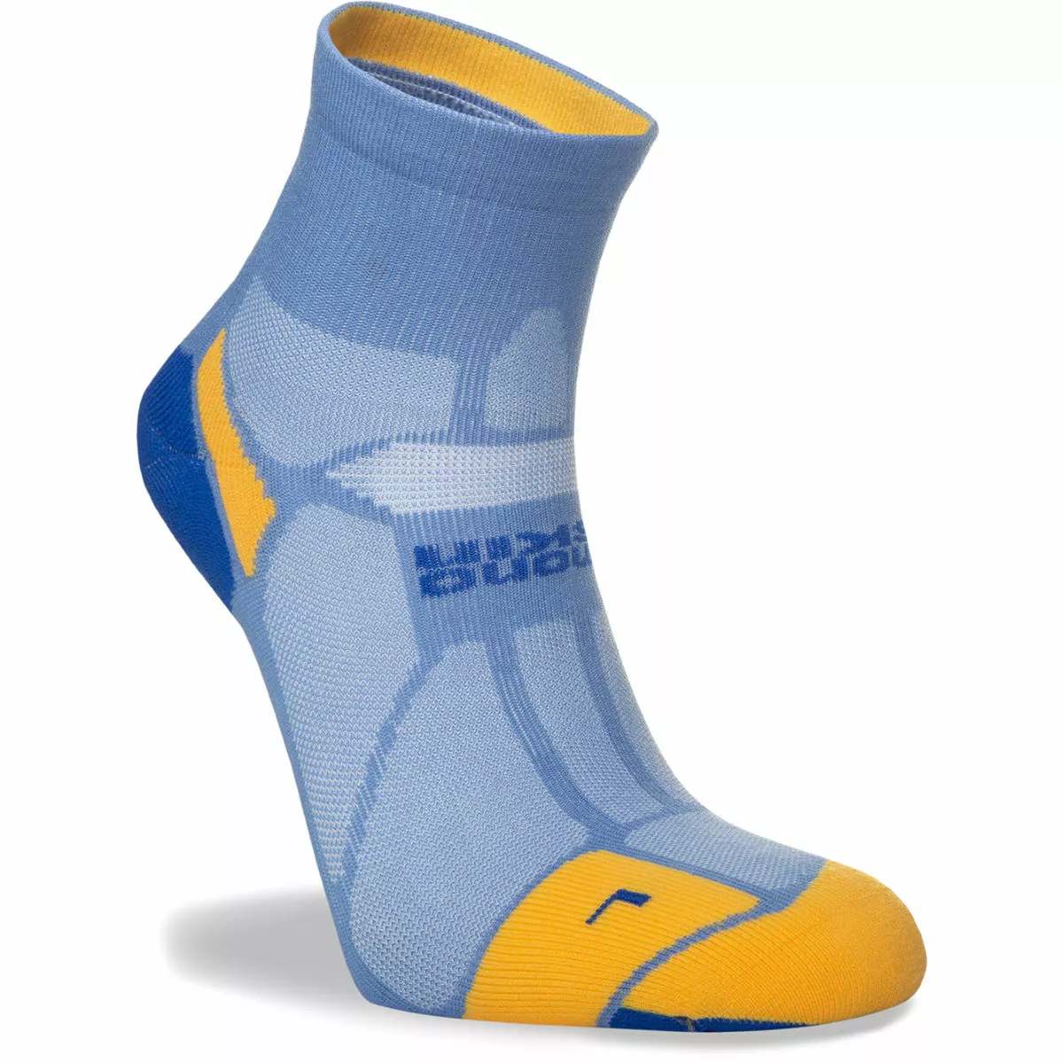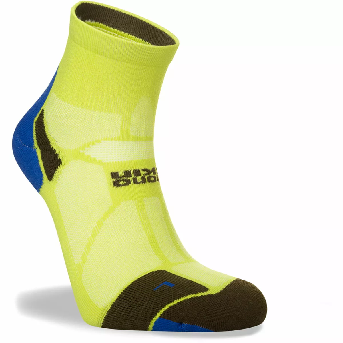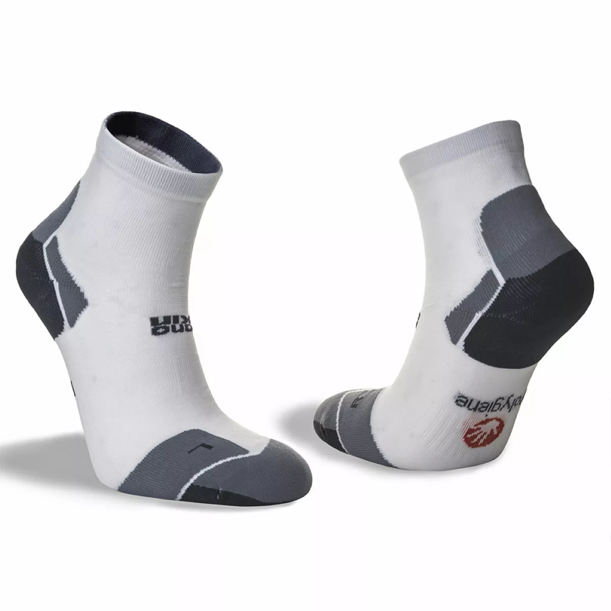 Calcetín tobillero acolchado de grosor medio Tratamiento antimicrobiano Ventilaciones de aire en la parte superior que ayudan a mantener los pies frescos Sección de agarre en el puente del pie y talón en forma de «Y» para un ajuste óptimo Lycra® Sport para mayor elasticidad y recuperación Elaboración de puntera con costuras planas para evitar las ampollas 97% Poliamida, 3% Elastano