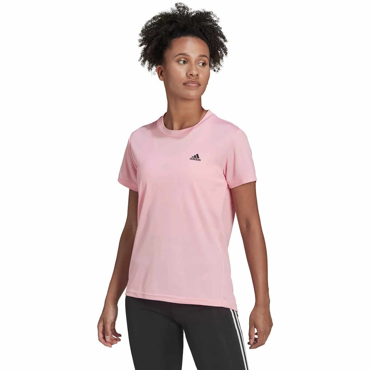 Confeccionada con tejido AEROREADY, la camiseta deportiva diseñada para moverse adidas AEROREADY para mujer extrae la humedad de la superficie de la piel y te la deja seca y cómoda a medida que tu entrenamiento aumenta. La confección transpirable permite que el flujo de aire circule fácilmente cerca de la piel y disperse el calor, mientras que el ajuste clásico y el diseño de cuello redondo garantizan un ajuste increíblemente cómodo. Confeccionado con materiales reciclados y con un dobladillo trasero caído para brindar protección durante las sentadillas y las estocadas.