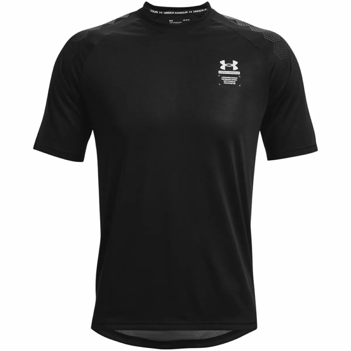 Holgado: Corte holgado: comodidad absoluta El tejido UA Tech™ 100 % reciclado es ligero y de secado rápido ArmourPrint suave e ingrávido en los hombros y los antebrazos agrega durabilidad adicional para que el equipo dure más tiempo Material que absorbe y expulsa el sudor y se seca realmente rápido Tecnología antihedor que previene la acumulación de microbios que causan malos olores Mangas raglán 100% Poliéster