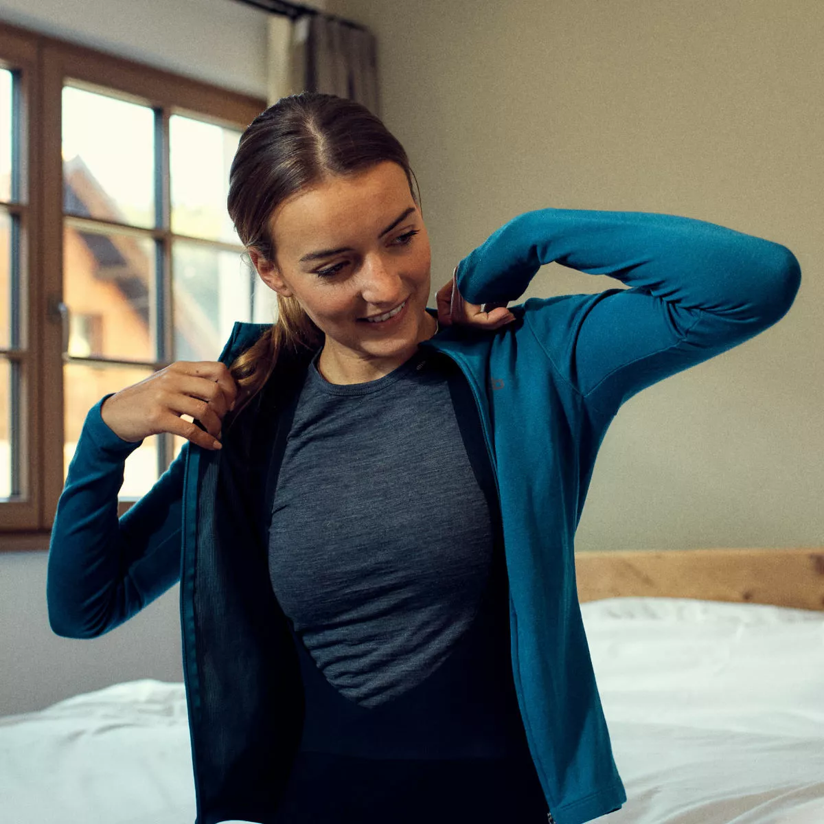 Merino M_150 es la prenda interior ideal para disfrutar de gran comodidad durante entrenamientos y actividades aeróbicas al frío, como el ciclismo o el running. El núcleo de la fibra es hidrófilo (atrae el agua) mientras que la superficie exterior es hidrofóbica (repele el agua), permitiendo de este modo lo absorción de una cantidad mayor de humedad antes de que la sientas, en comparación con fibras sintéticas.