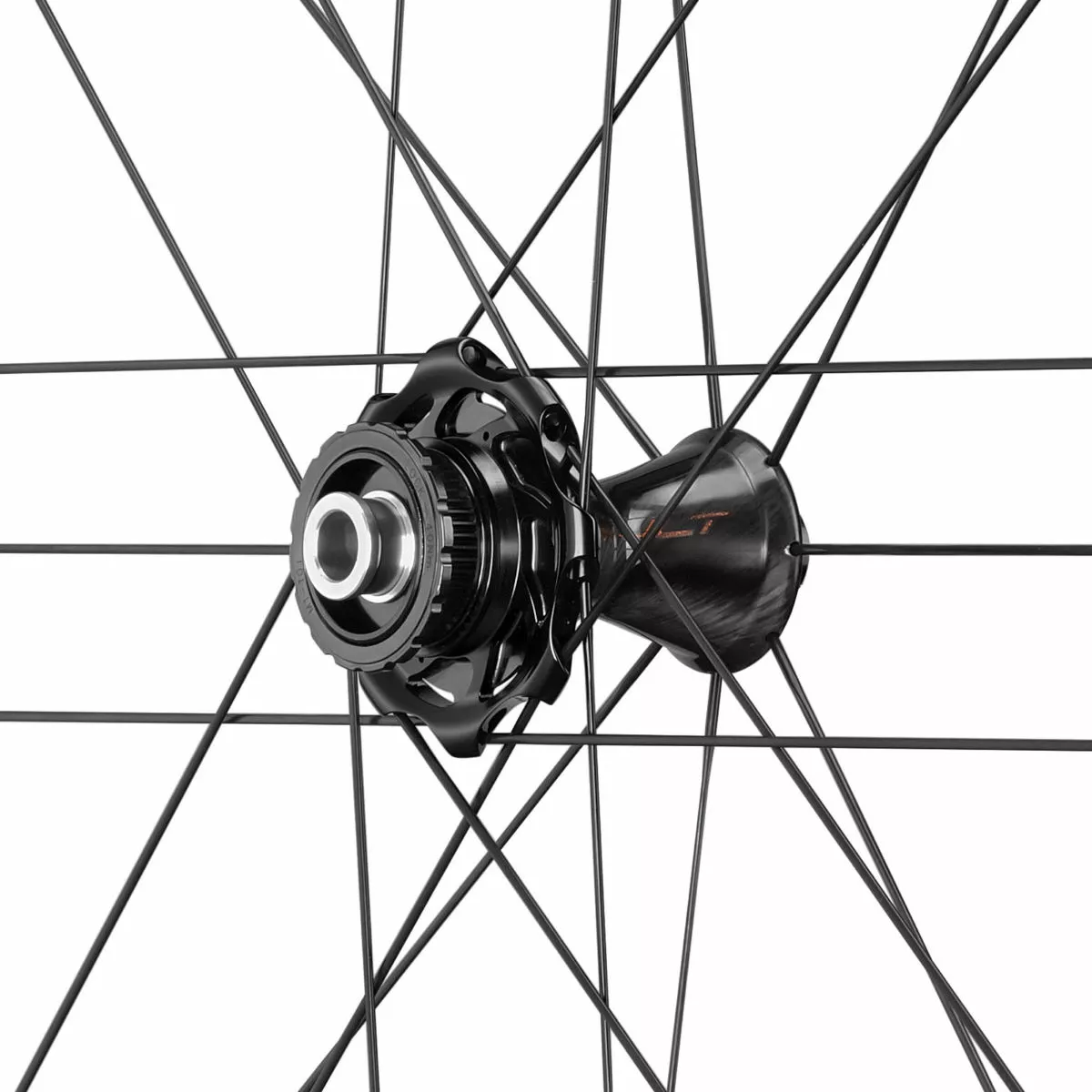Patrón G3: Campagnolo ha desarrollado una arquitectura de montaje, que en comparación con las ruedas tradicionales, permite mejorar la transmisión de energía, reducir la tensión sobre los radios de la rueda derecha e incrementar la rigidez transversal. Esto se consigue porque en la geometría G3, el lado derecho de la rueda trasera incorpora el doble de radios que el lado izquierdo. Los resultados del sistema G3 son realmente extraordinarios: mejor transmisión del par motor, mejor rigidez lateral, reducción de la tensión en los radios de las ruedas traseras. Gracias a que el sistema G3 compensa las fuerzas que actúan sobre ambos lados de la rueda, las ruedas ya no vibran, ni siquiera sometidas a un peso superior.