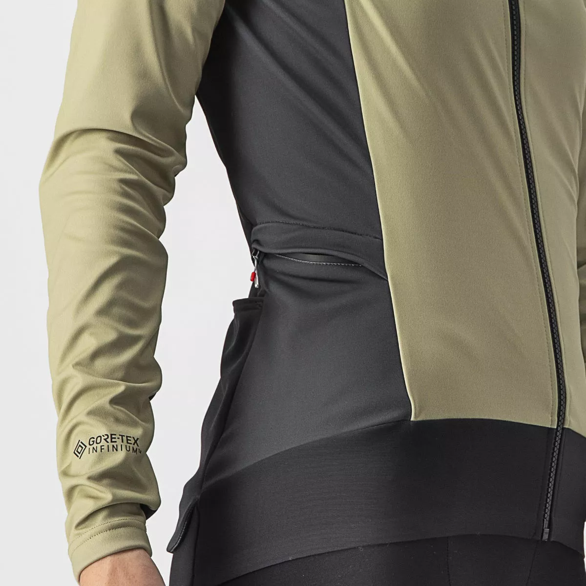 Tejido GORE-TEX INFINIUM™ WINDSTOPPER® 150 en la parte delantera y las mangas para protección contra el viento con alta transpirabilidad y protección eficaz contra la lluvia protección eficaz contra la lluvia Nano Flex Xtra Dry, con acabado repelente al agua de nanotecnología, en la espalda para una mayor ventilación La construcción Alpha de doble capa separa la capa a prueba de viento de la capa de aislamiento Capa interior de Prosecco Strada para un aislamiento ligero con una gestión eficaz de la humedad Cremalleras frontales dobles YKK® Vislon® Bolsillo delantero con cremallera tres bolsillos traseros reflectantes con orificios de drenaje cortados a láser La cintura sin rematar queda plana y se mueve contigo 78% Poliamida, 22% Elastano Ciudad: Sí Carretera: Sí