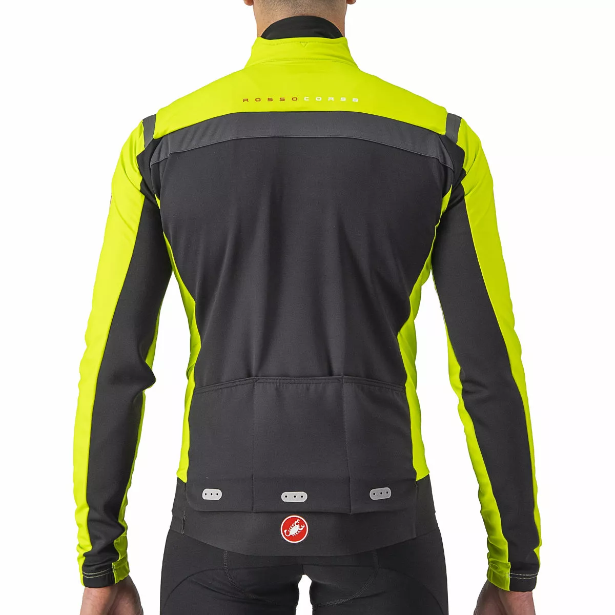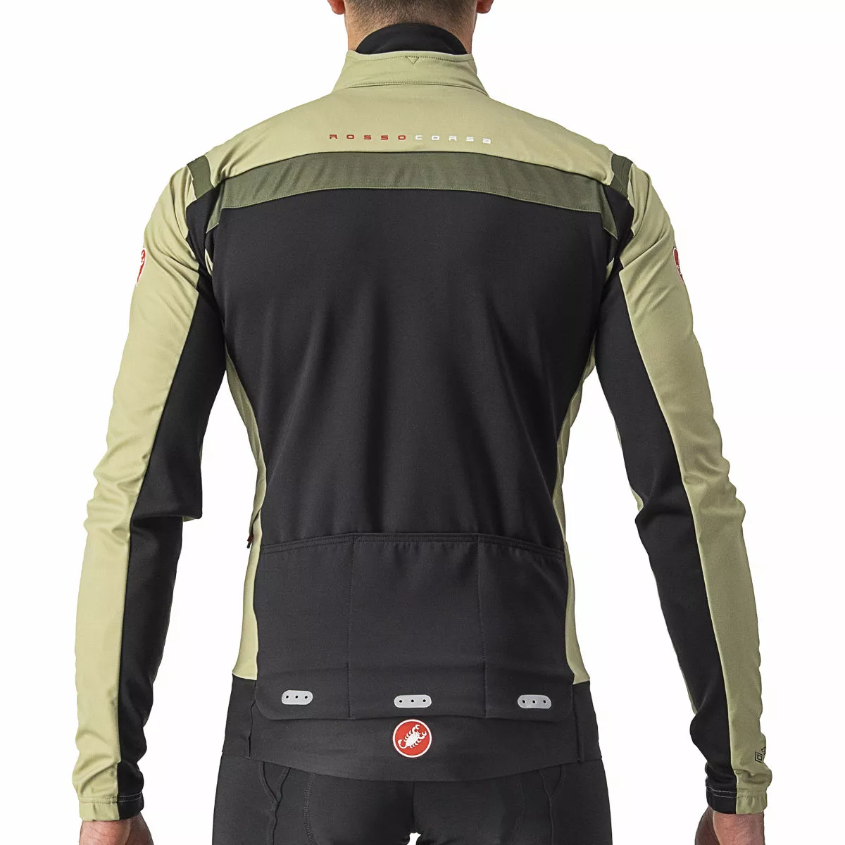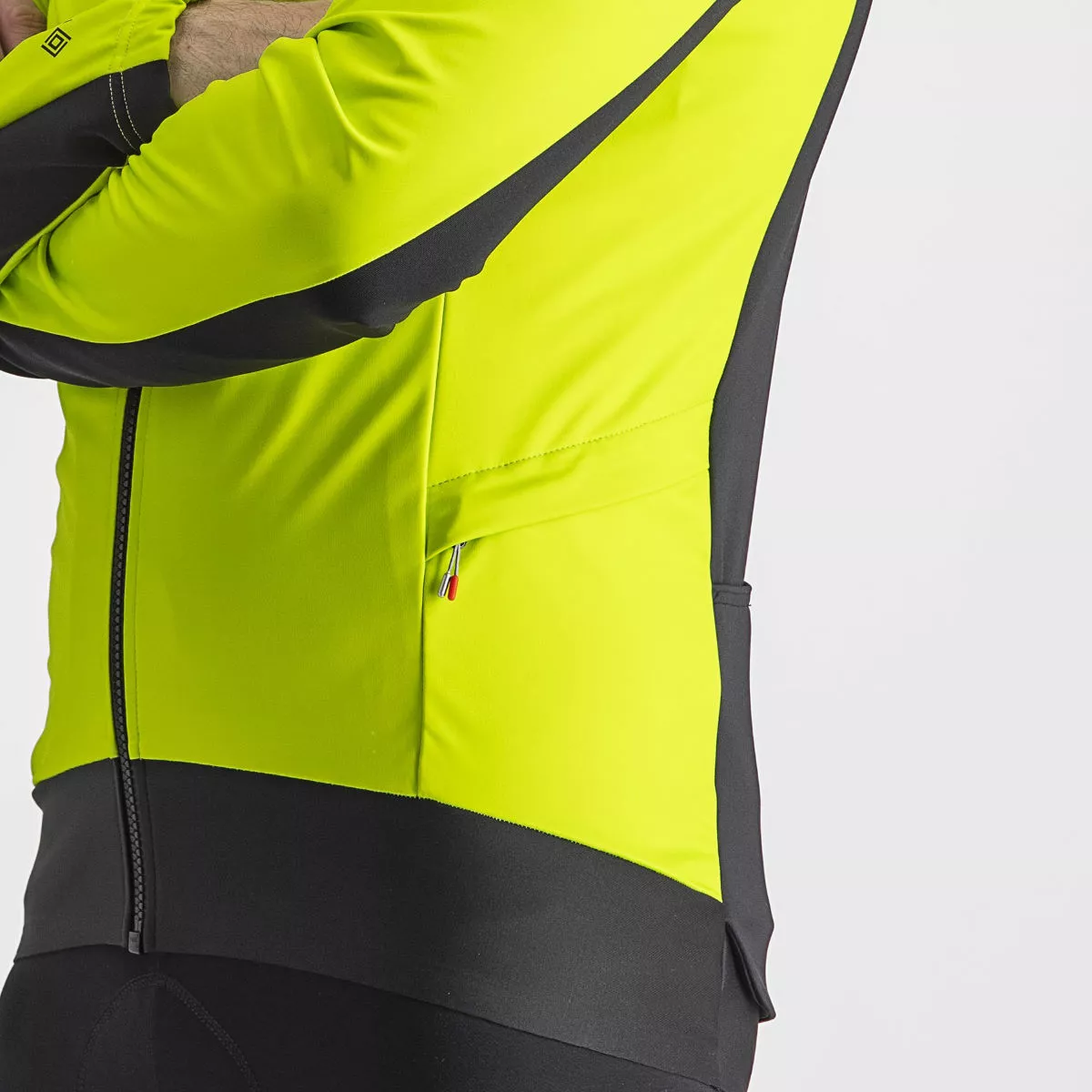 El patrón avanzado lo convierte en un excelente ajuste ceñido al cuerpo, el estiramiento adicional en la cintura mantiene el ajuste elegante mientras que la cintura sin bordes queda plana y se mueve contigo. Acabada con una pinza de texto de silicona Castelli en la cintura, evita que el maillot / chaqueta se suba. Tres bolsillos traseros con orificios de drenaje reflectantes cortados con láser más un bolsillo frontal con cremallera se encargan de todas las necesidades de almacenamiento.