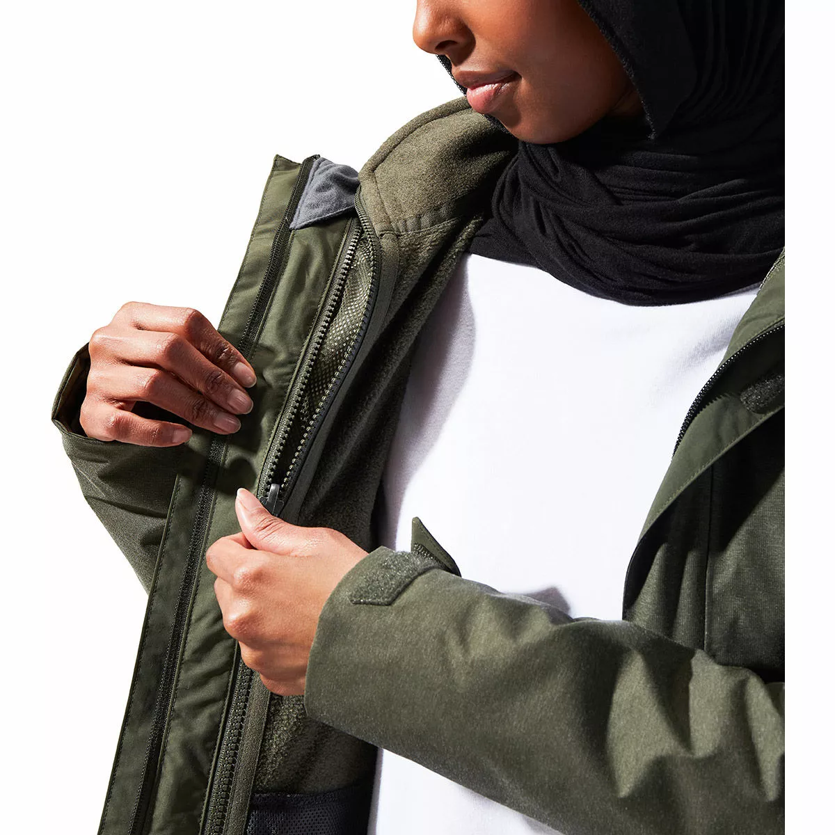 La protección adicional contra la intemperie proviene de la capucha ajustable fija Mantente más abrigado y seco con el dobladillo caído Deje de vientos fríos que le persigan por los brazos con puños ajustables Essentials está seguro en dos bolsillos laterales con cremallera en la chaqueta exterior El vellón interior está confeccionado con tejidos reciclados Mantén las manos calentitas en dos bolsillos para calentar las manos en el forro polar interior La tela de la cara jaspeada agrega un toque de diseño adicional a la chaqueta exterior Capa externa: 87% Poliamida, 13% Poliéster Forro polar: 100% Poliéster Aislamiento: Sí Impermeable: Sí