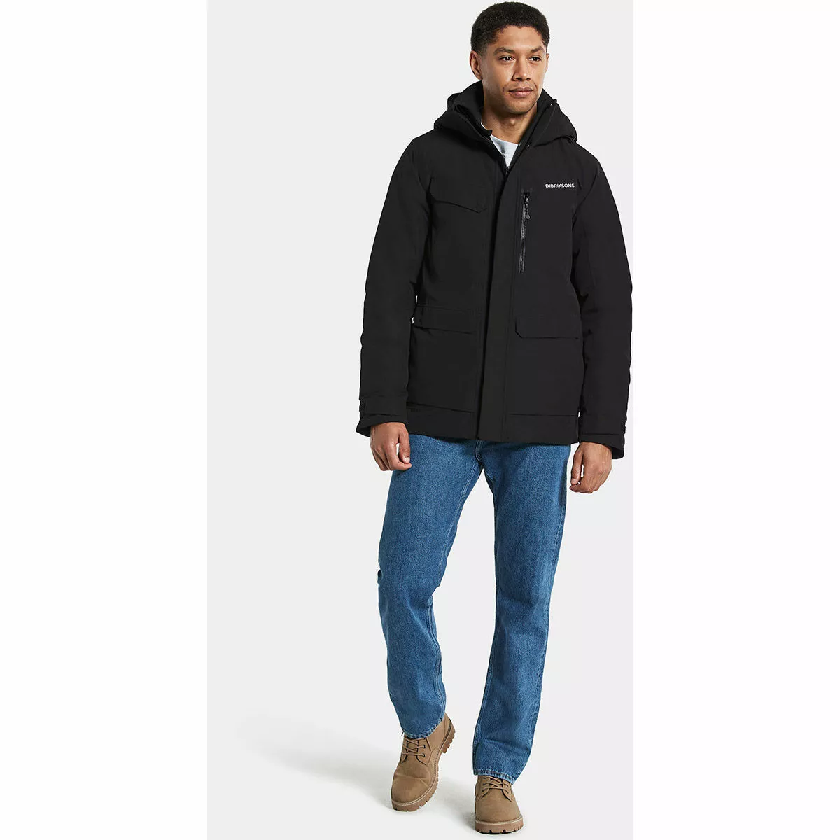 The Didriksons Sebastian 3 Jacket boasts premium protection from challenging weather conditions. Padded, and fully windproof and waterproof with taped seams, it is suitable to wear in both the city or countryside. Boasting a regular, straight-cut fit, it has been made from a soft polyester fabric with a smooth, matte finish. A hood, storm flap, thumbholes and drawstring trims also work to keep any excess cold a bay, while multiple internal and exterior pockets provide ample space for ensuring valuables are within easy reach.