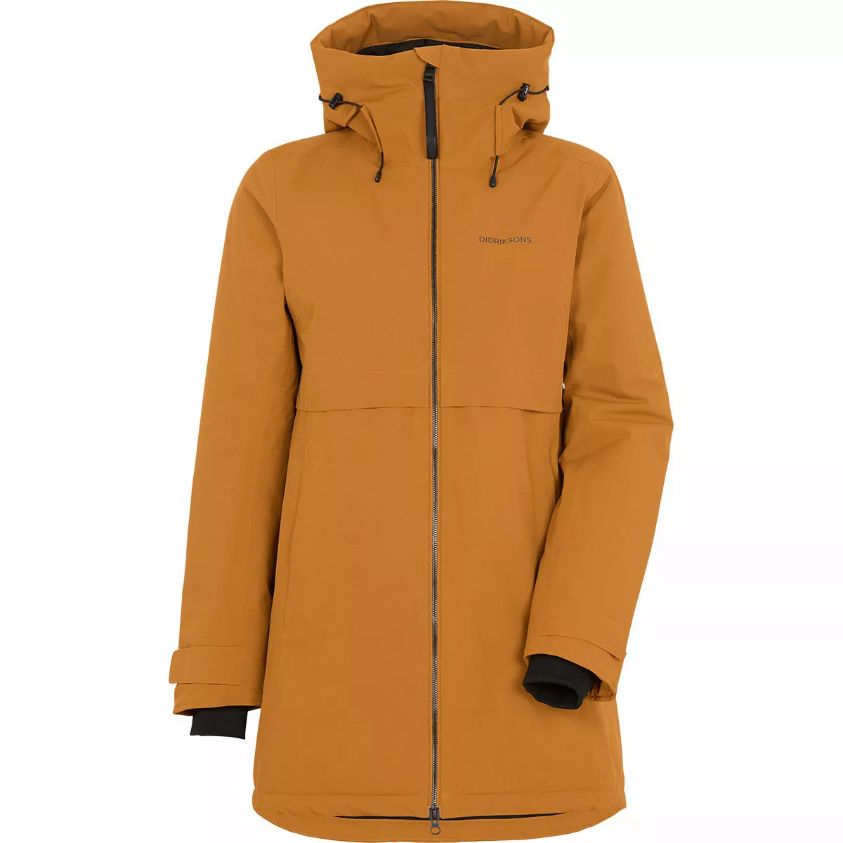 The Didriksons Women’s Helle 5 Parka will take you from your daily commute to weekend adventures with its high performing design technology. Featuring a regular fit and a figure-shaped silhouette that is slightly tapered at the waist, it has been made with a fully wind and waterproof construction alongside taped seams and a breathable finish for day-long comfort. A fixed hood, high collar and adjustable cuffs and hem also protect against cold winds, while two front pockets and two inside pockets with zips provide ample space for keeping essentials within easy reach.