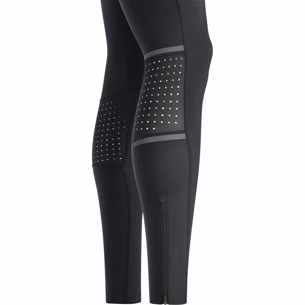 When running in cooler conditions, the GOREWEAR Impulse Running Tights have got you covered. These full-length tights are made from a soft and comfortable fabric with 4-way stretch so you can move easily without restriction. Crafted from fast-drying material with mesh inserts in the knee bend and laser-cut air vents for optimal breathability so you remain cool and dry when on the move. The wide waistband with integrated drawcord gives a secure adjustable fit and a back zip pocket provides storage for your small running essentials. Finished with reflective detailing so you remain visible in low lighting conditions.