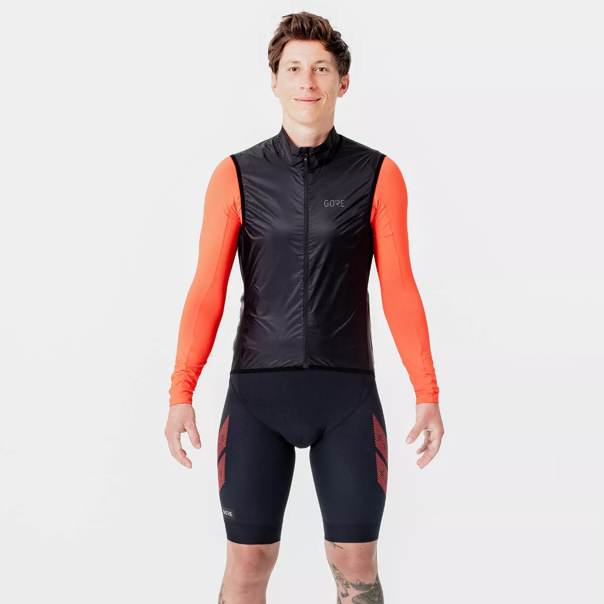 GOREWEAR’s most performance-oriented fit, ‘Form Fit’ sits close to the body to improve aerodynamics, enhance moisture management and improve thermal efficiency. This fit gives you a gilet that won’t flap too much in the wind, saving energy over the course of your ride.
