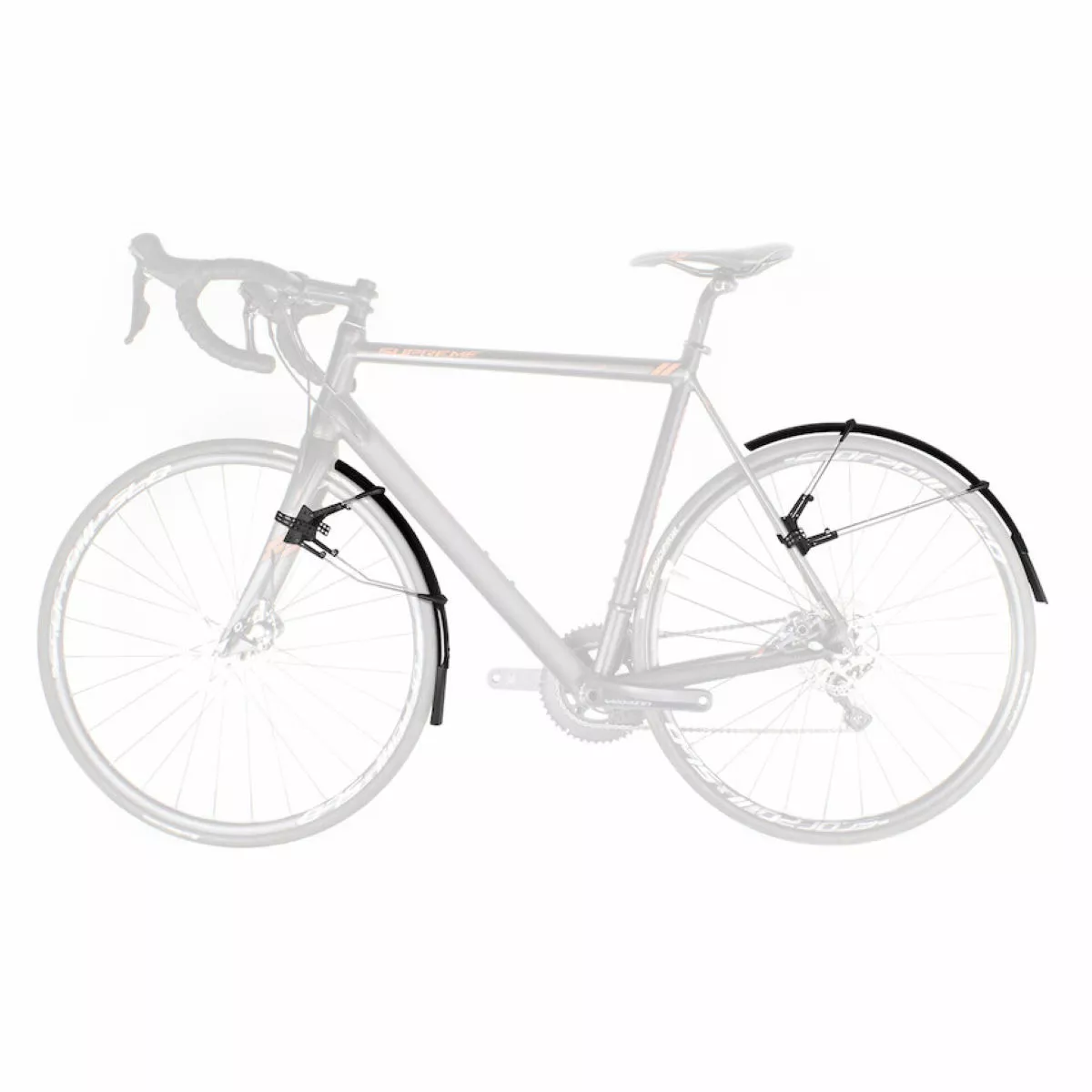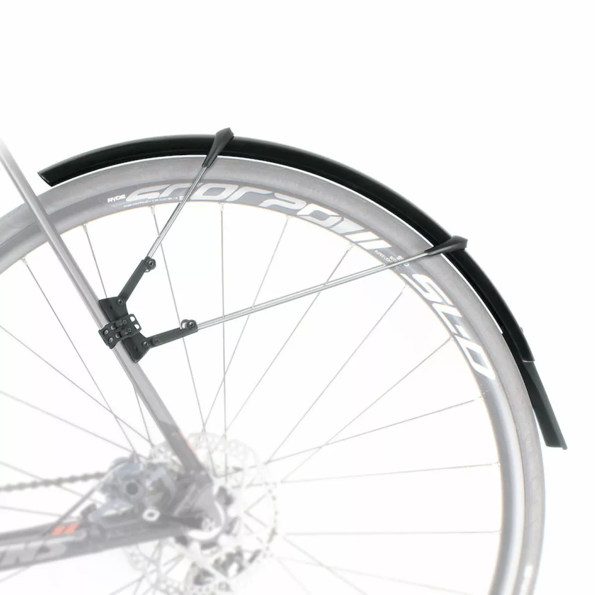 Su sistema de ajuste de desenganche rápido con dos bisagras también es compatible con horquillas aerodinámicas y frenos de disco. Se pueden adaptar perfectamente al radio de la rueda ajustando la longitud de las vainas. El alerón extra largo ofrece mayor protección contra las salpicaduras. Incluye un juego de adhesivos protectores para evitar dañar la pintura de la bici.