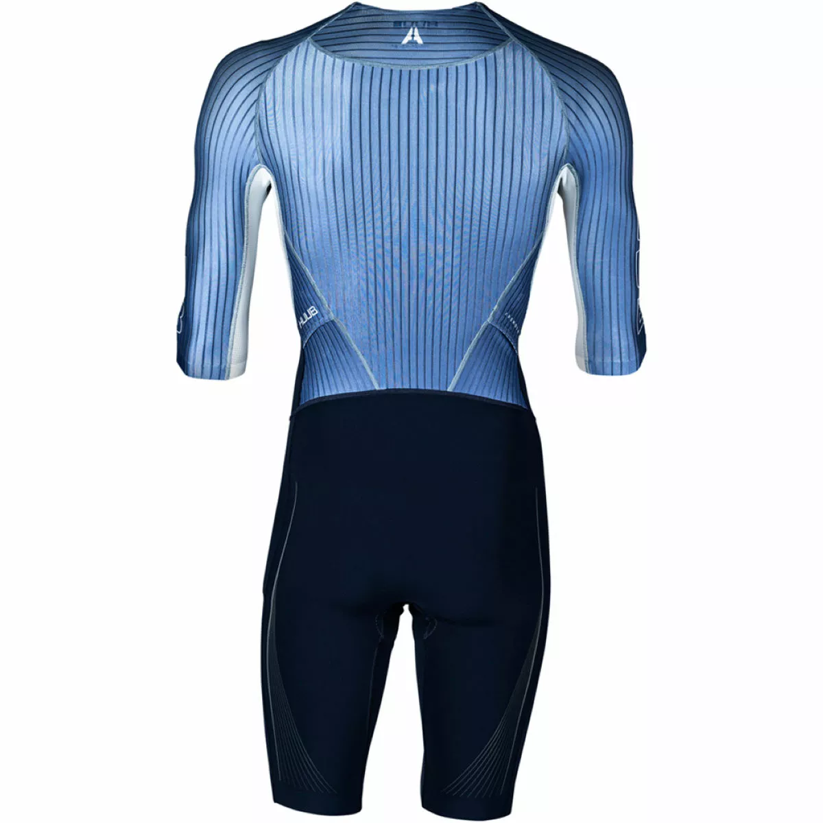 The standard, Dan Bigham designed Anemoi Aero Plus Tri Suit was created by first working to amass a large collection of race data from a variety of triathletes – short, middle and long course, male and female, and age group up to Olympic champions. This data was then used to dictate the direction of the design, knowing that a small change in the drag force experienced can result in an enhanced and much faster performance.
