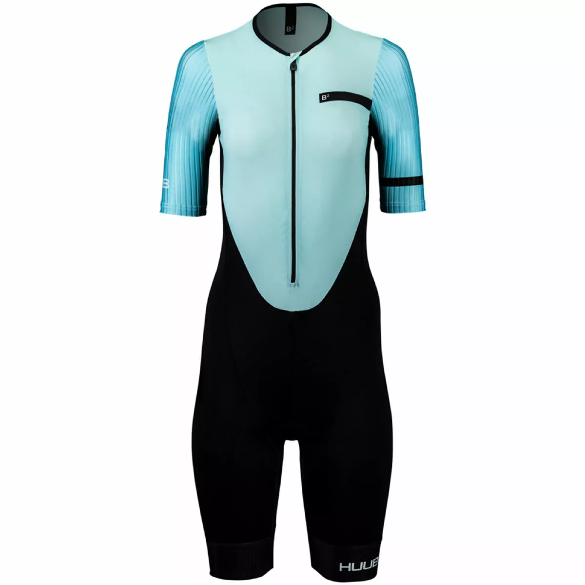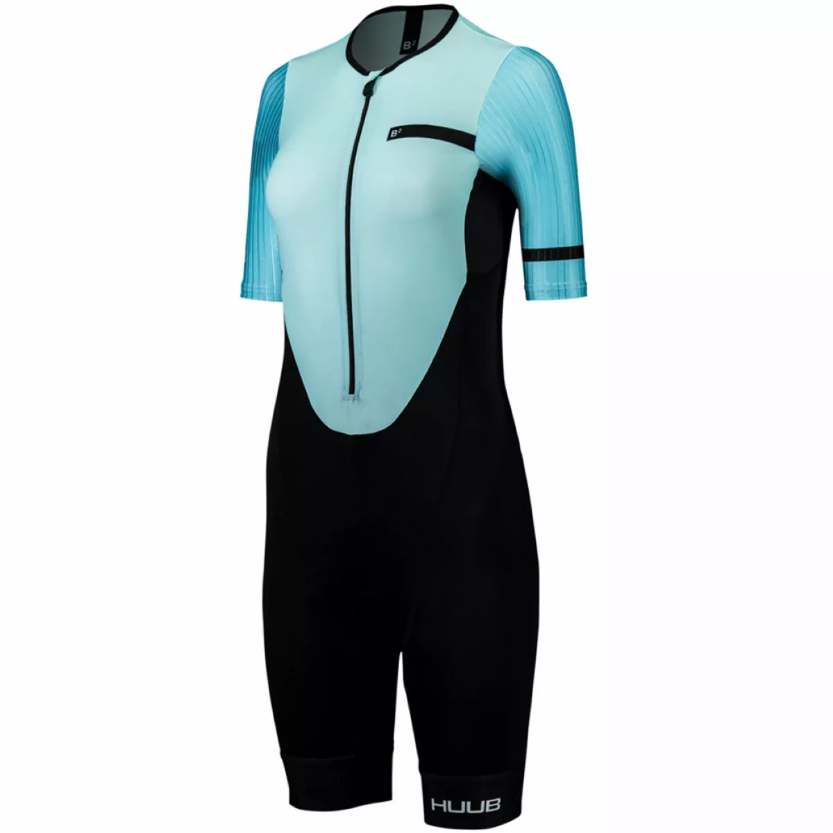 The HUUB Women’s Brownlee Club Aero Trisuit features performance aero fabrics that offer a soft feel but also provide great heat dissipation when competing. Designed with mesh panelling under the arms to provide extra airflow to further regulate body temperature.