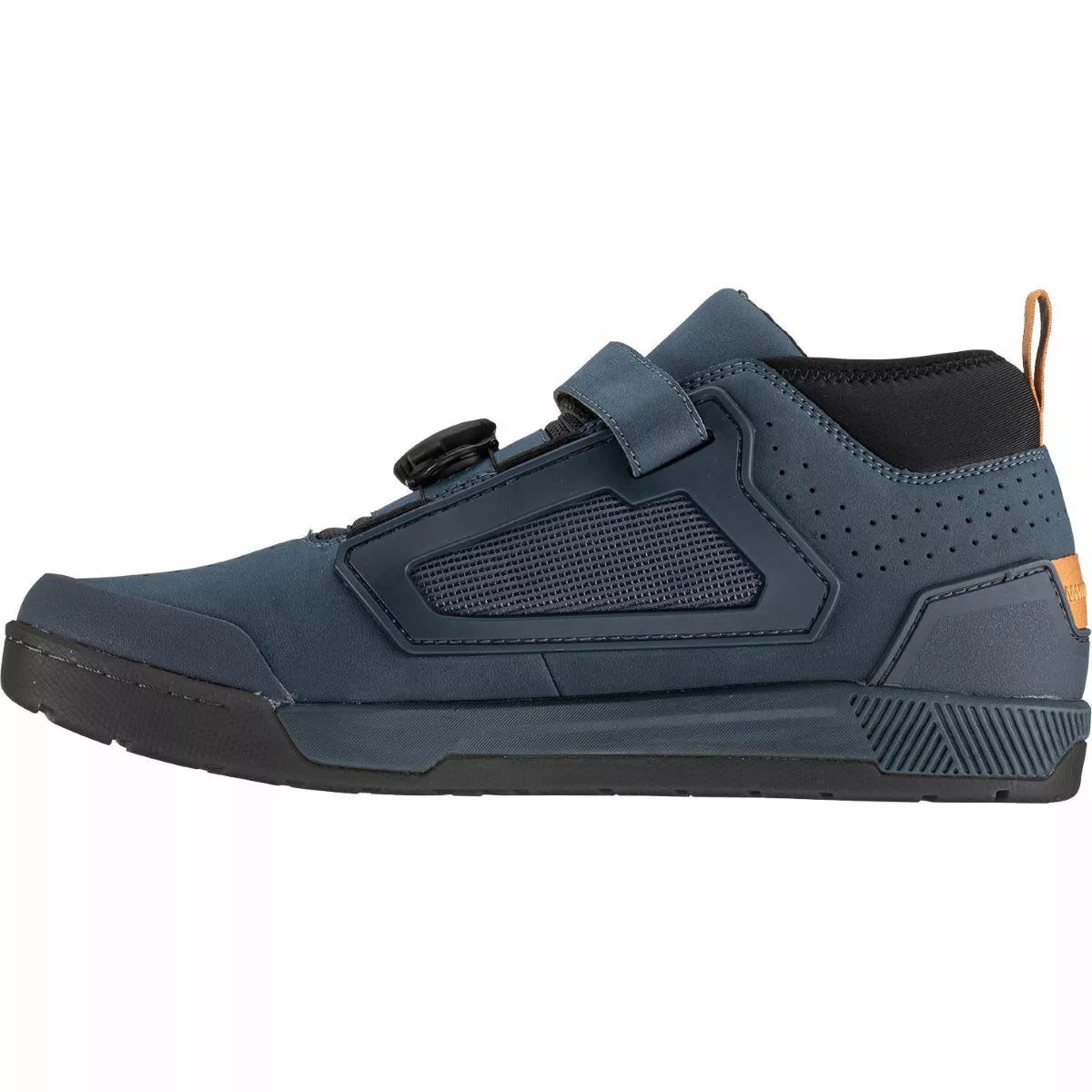 When it comes to durability, it’s hard to beat the synthetic leather upper. Supple but tough, it has what it takes to contend with the inevitable knocks, scrapes and crashes of mountain biking. A rigid reinforced toe box fends off bumps and bruises when you’re hanging a foot out. And to the heel, the heel is moulded to keep your foot secure and a neoprene ankle collar keeps everything stable.