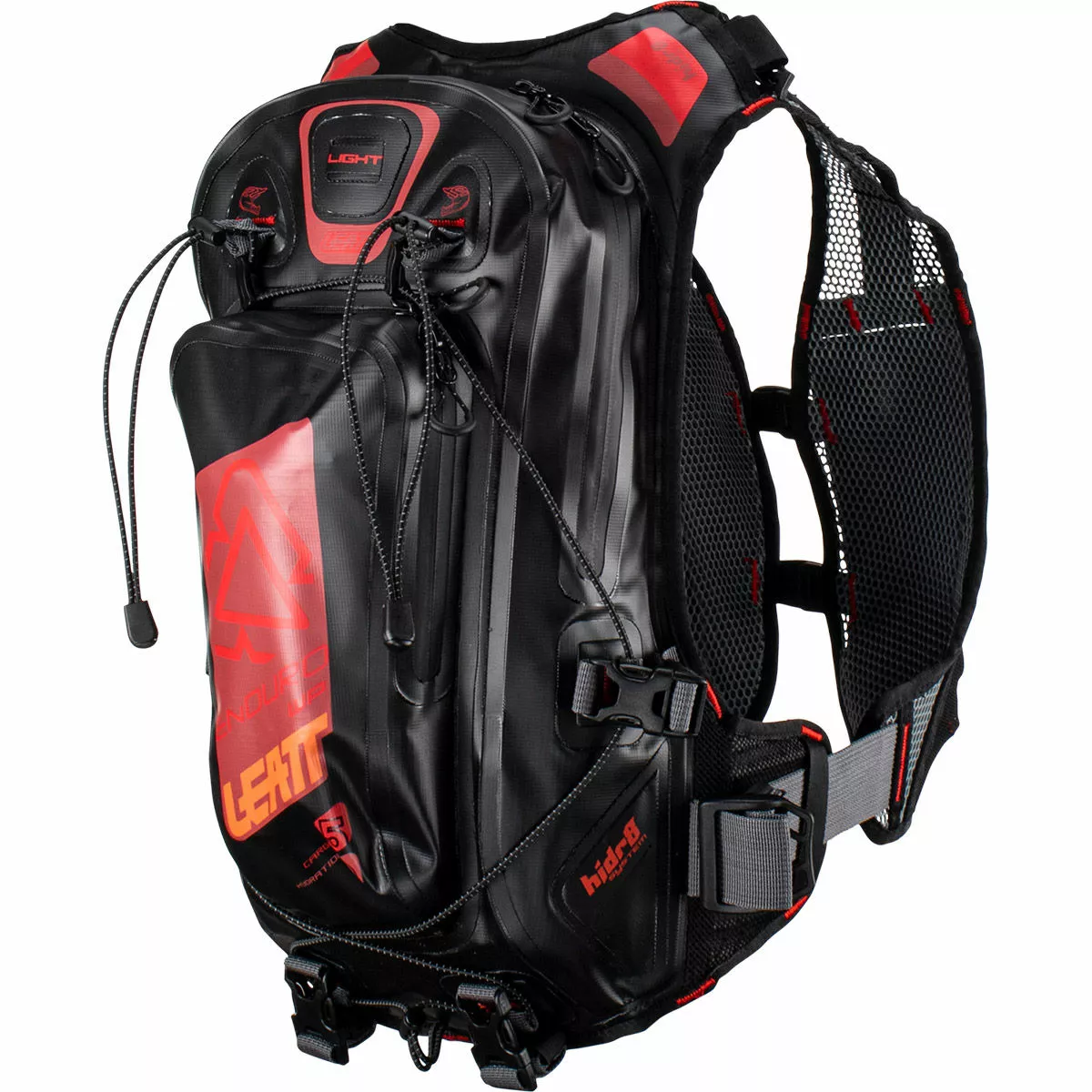 The Leatt Hydration MTB HydraDri WP 2.0 is a Design and Innovation award-winning, fully-welded, waterproof hydration backpack. Fully equipped with a 2.0L bladder, 5L cargo space, and a level 1 back protector, it offers ample room for all your trail gear as well as keeping you protected where you need it most. A chest harness and shoulder adjuster system also provides a solid non-bump fit without a waist belt, while the AirLine back ventilation keeps you cool, and the clever reflective back panel keeps your liquid both hot or cold.