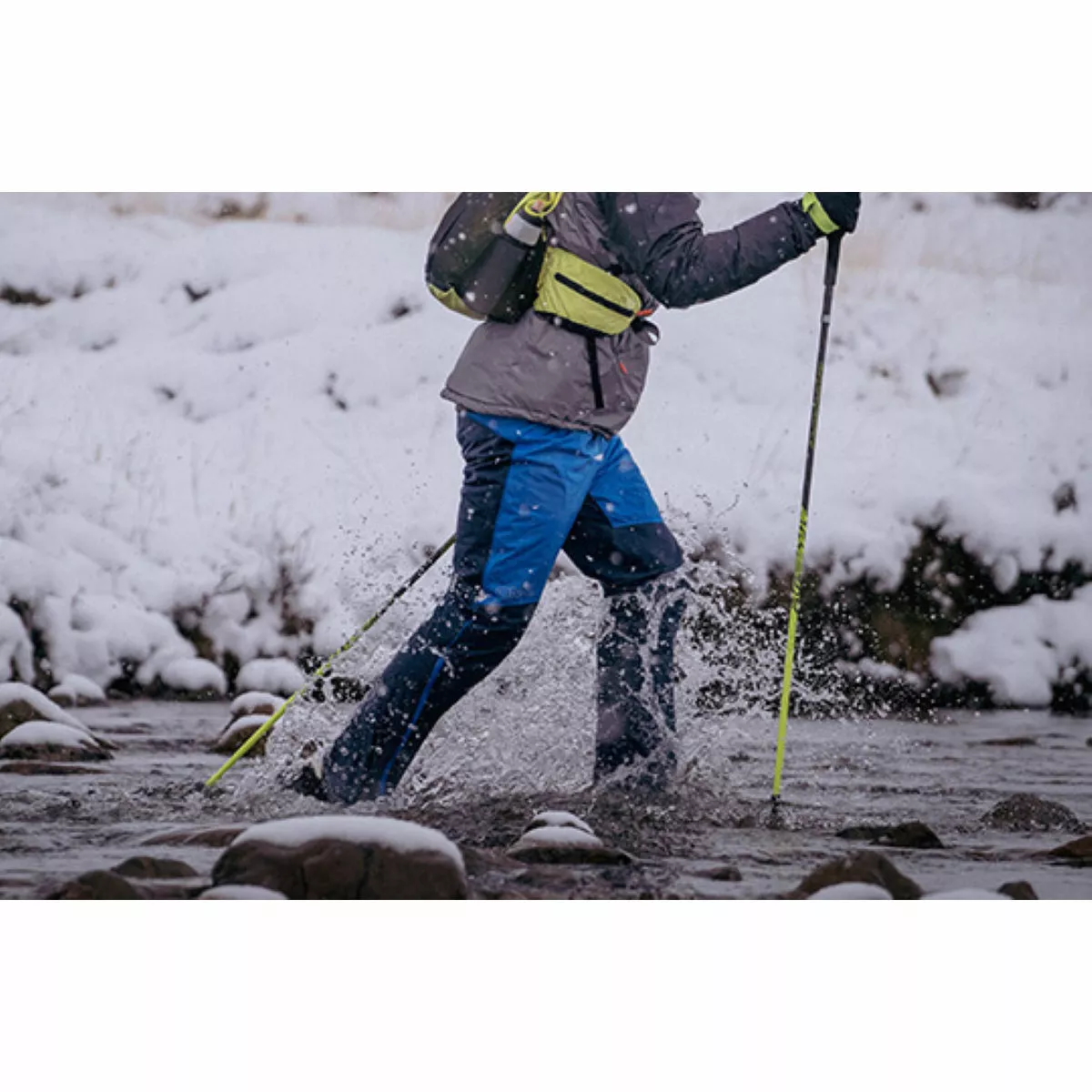 Constructed from hard-wearing Nylon, with 4-way stretch, great breathability and fully taped seams the OMM Kamleika Pants are made for running in the mountains. These trousers fit and feel like a performance piece, moving with you as you run while the stretch fabric allows for a closer fit. 37.5 fabric technology helps maintain a steady temperature inside whilst the windproof and waterproof membrane keeps the weather at bay. Kamleika fabric not only offers fantastic freedom of movement, it’s also incredibly soft to the touch and silent compared to the rustle of traditional overtrousers.