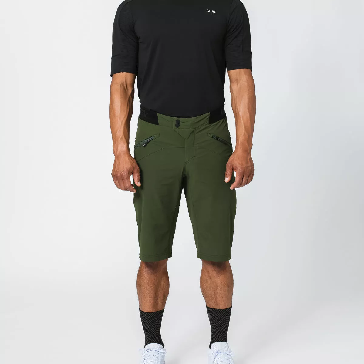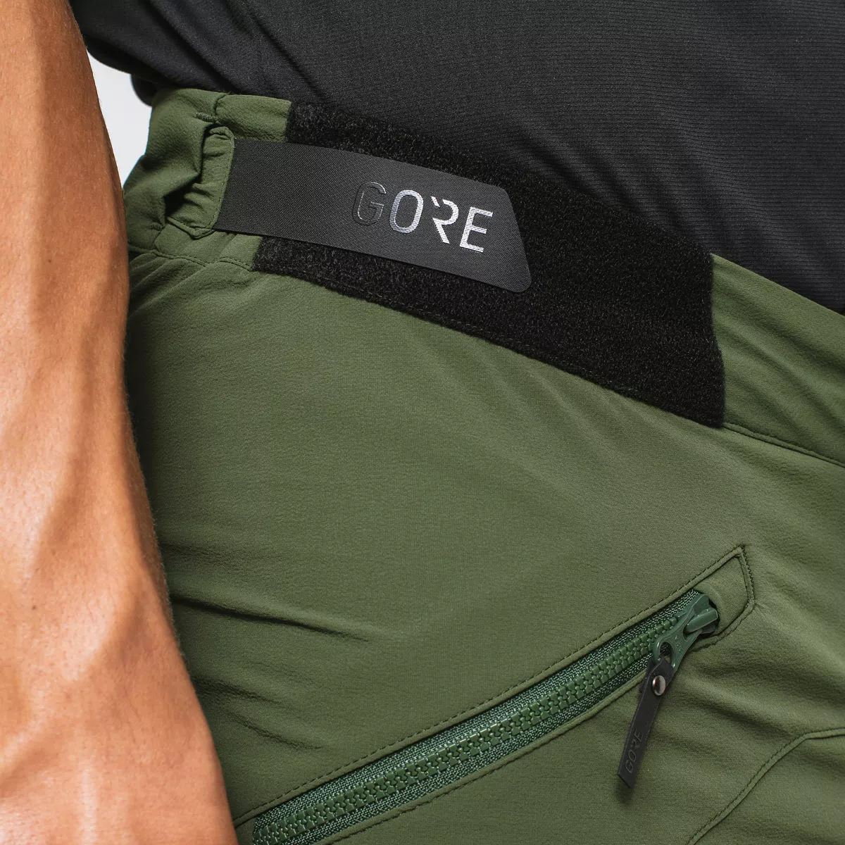 Diseñado con paneles de tejido elástico para mayor libertad de movimiento Salidas de aire cortadas con láser para control de temperatura Cintura ajustable con lengüetas de Velcro Banda de silicona para mantener las bermudas en su lugar 2 bolsillos delanteros con cremallera Bragueta con apertura de cremallera Cierre con 2 mosquetones y un mosquetón forrado Tirador en la cremallera para abrirla más fácilmente Pequeño bolsillo trasero con cremallera para llaves u objetos de valor Detalles reflectantes Ajuste regular – Longitud de la entrepierna 34 cm / 13,4 pulgadas Parte principal: 73% Nailon Cordura, 15% Poliamida, 12% Algodón Tejido elástico: 85% Poliamida, 15% Elastano MTB: Sí