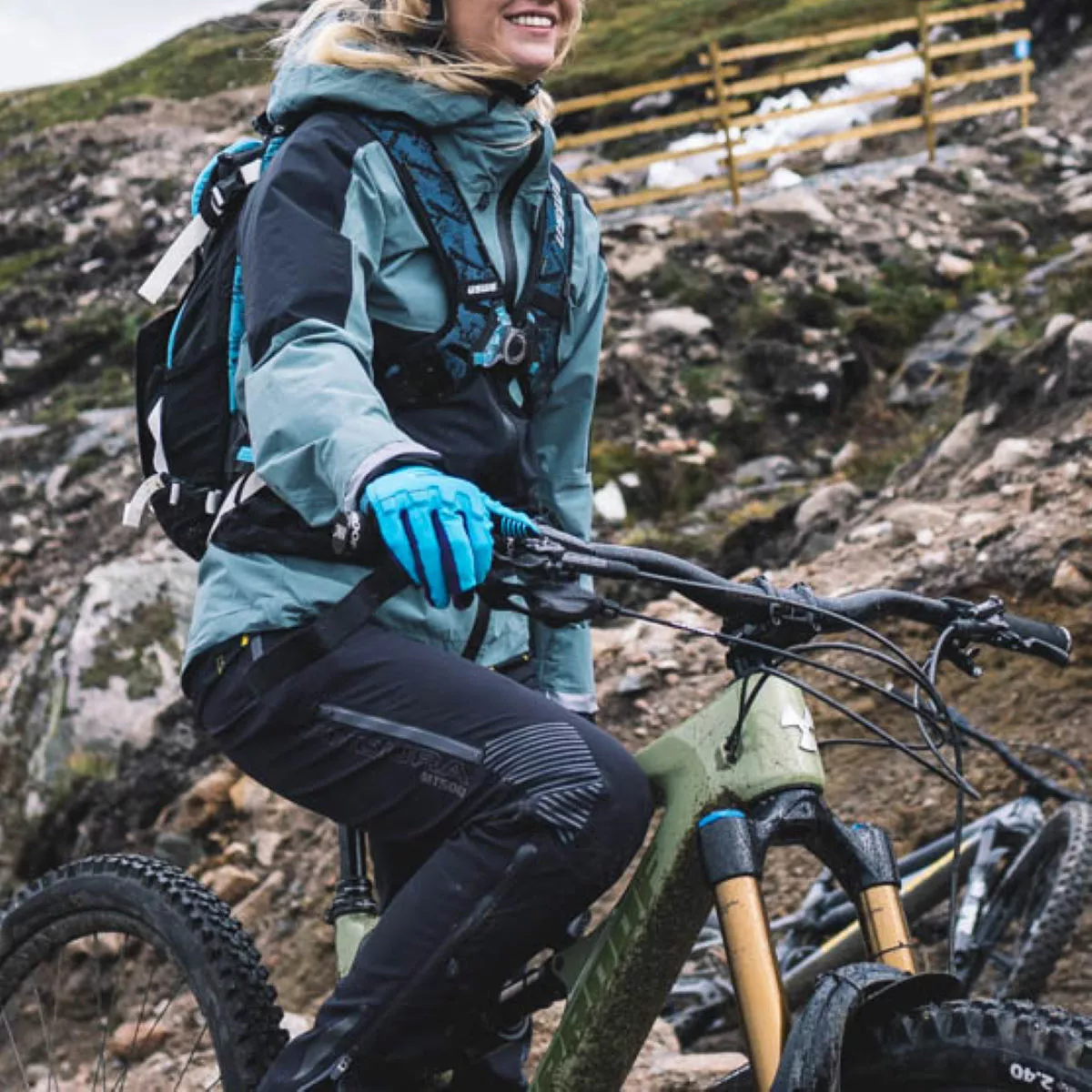 Tejido impermeable ExoShell40DR de 3 capas en una construcción con costuras completamente selladas – Tejido MadeKind certificado como seguro para ti y el medio ambiente sin PFC tóxicos Preformado para un excelente ajuste articulado en la bicicleta y paneles elásticos para un movimiento sin restricciones Asiento extra duradero y panel interior del tobillo La mitad superior de las cremalleras se dobla como ventilación en los muslos con refuerzos de malla Cremalleras laterales repelentes al agua bidireccionales largas a la altura del muslo que facilitan ponerse y quitarse los pantalones Ajuste compatible con rodilleras Detalles reflectantes para mayor visibilidad durante la noche Compatible con Clickfast™ (forro no incluido) Presillas para el cinturón y bragueta con cremallera y corchete Impermeable: 20000 mm; Transpirable: 40000g/m2/24 horas 100% Poliéster Impermeable: Sí