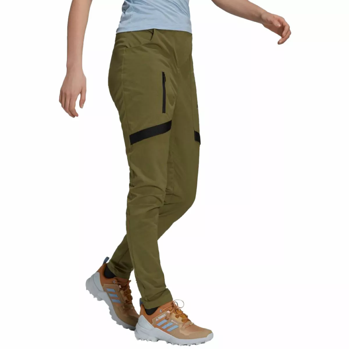 Los pantalones de senderismo adidas Terrex Zupahike para mujer están confeccionados con una mezcla de tejido TERREX que combina un tejido elástico de doble tejido resistente, en la parte delantera para resistencia a la abrasión y repelencia al agua, con un tejido ligero y suave de doble tejido en la parte posterior para transpirabilidad, facilidad de movimiento y para crear un ajuste favorecedor. Los pantalones se mantienen en su lugar con una cinturilla elástica suave al tacto para una comodidad superior con una cremallera y cierre de botón en la bragueta delantera.