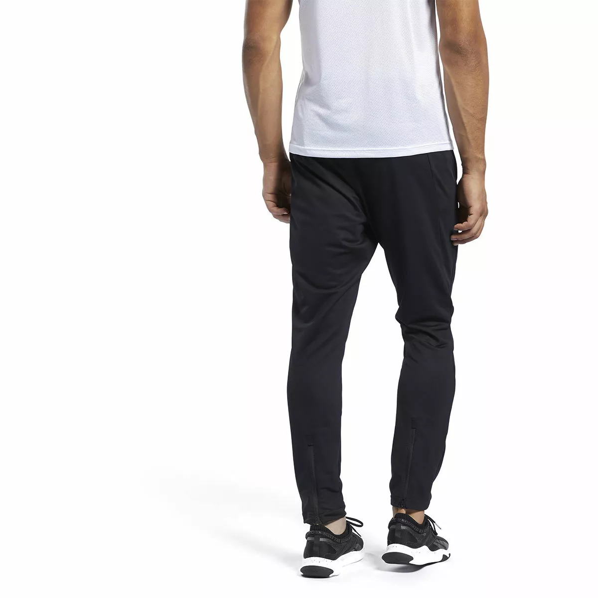 Crafted from incredibly comfortable tricot fabric, the Reebok Workout Ready Track Pants are soft against your skin and smooth on the outside. The slim fit gives a flattering look that never feels restrictive as you move and stretch while a drawcord on elastic waist gives a secure and easily adjustable fit. A leg gusset insert further enhances your range of motion while slip-in front pockets give quick, easy access storage and ankle zips for an easy on/off.