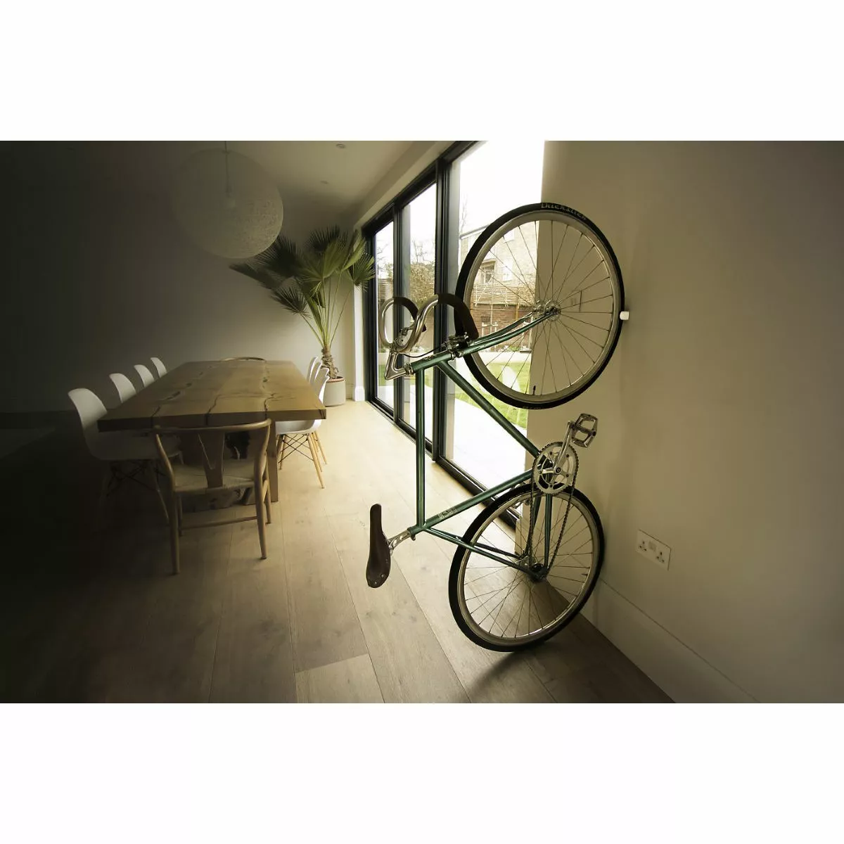 ¿Por qué es tan maravilloso? Pues bien, permite ahorrar especio, para que lo mantengas todo en orden y presumas de bicicleta sin estropearla ni marcar las paredes.