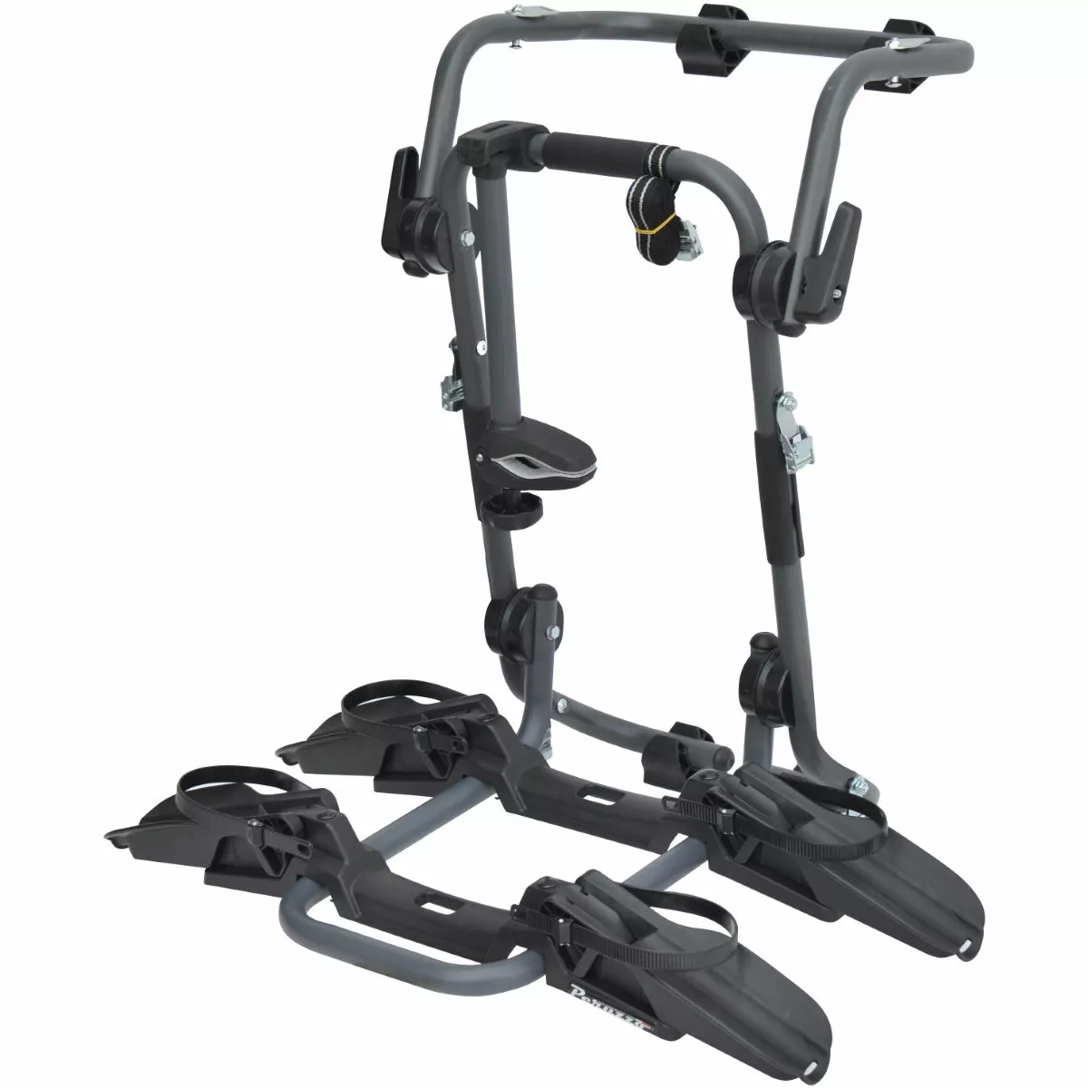 6 correas probadas con carga de 300 kg, para mayor seguridad Totalmente montado Los tubos de acero tienen tratamiento antioxidante Fácil y rápido de instalar y quitar Se suministra con soportes de fijación superior rígidos (art.955) Se pliega para facilitar el almacenamiento Soportes de rueda de gran tamaño Se pliega para ahorrar espacio Se suministra con brazo de agarre para bicicleta de 2 grados Seguridad por partida doble mediante una correa adicional fijada a la estructura