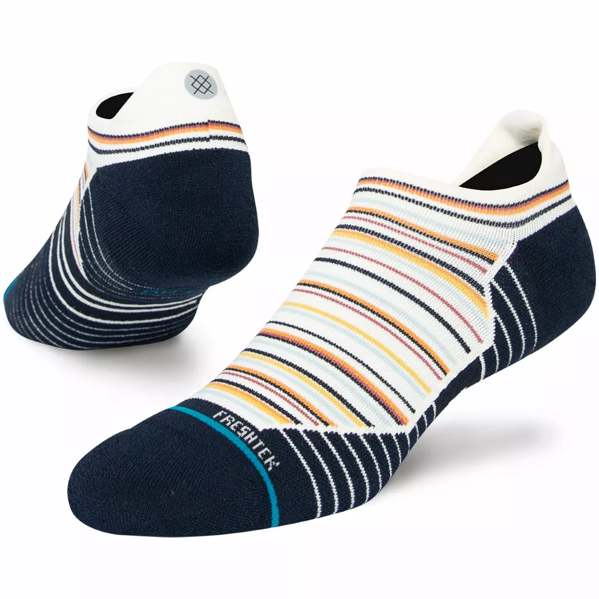 Featuring Infiknit™ and FreshTek™ technology, the Stance Light Cushion Cape Tab Socks provide long-lasting durability and will keep your feet comfortable and fresh no matter how hard you push yourself when training. Featuring a custom blend of moisture-wicking anti-odour fibres and a network of mesh vents that wraps from the top of the foot to the arch, these socks will keep you cool, dry and fresh while a seamless toe closure eliminates any possible irritation. Light cushioning creates a breathable layer between your foot and your shoe while anatomically correct left/right designs deliver a performance fit and feel. Finally, a reflective logo on the rear tab increases visibility and allows for easy removal.