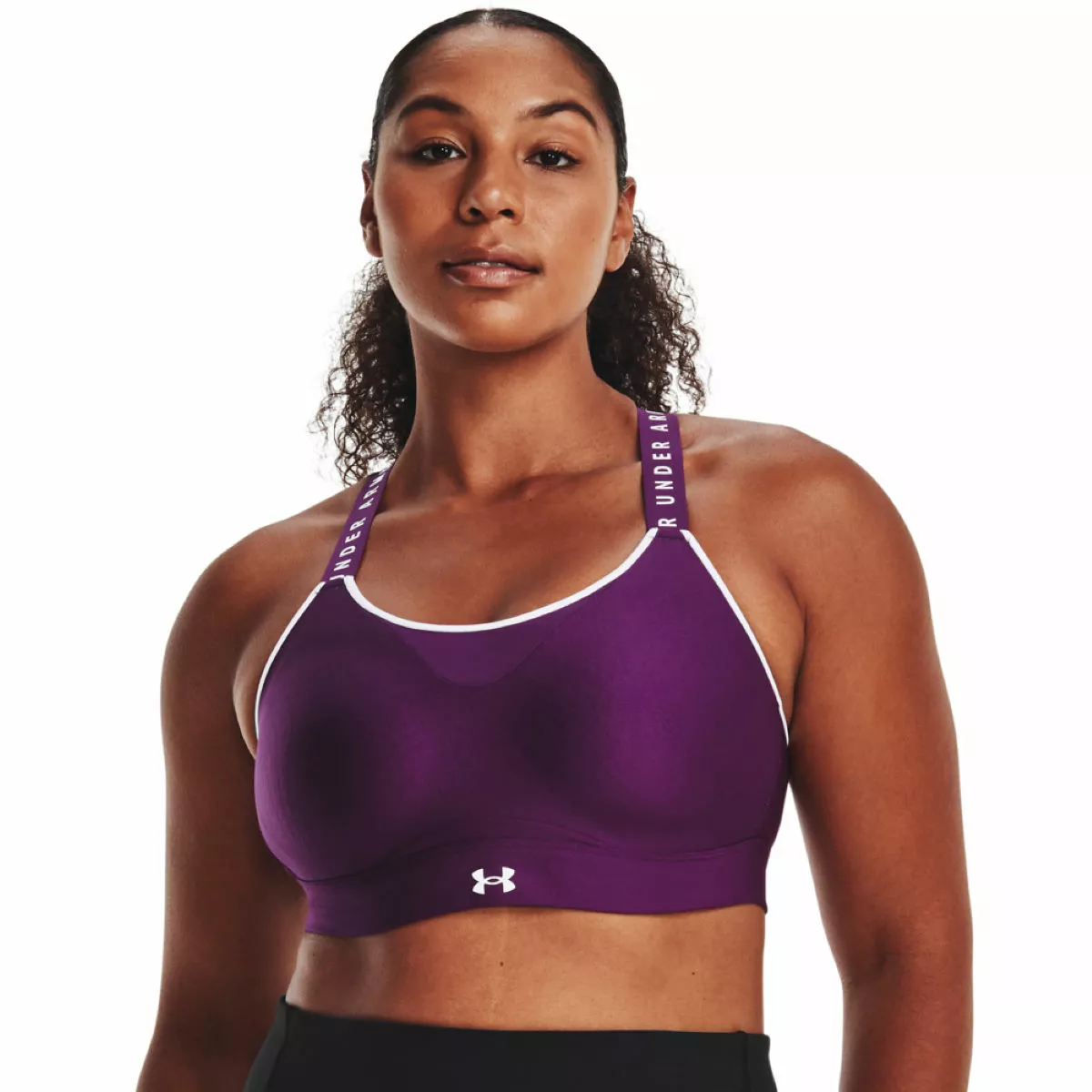 Ajuste ceñido: Ajuste pegado al cuerpo sin oprimir Brinda apoyo estratégico, diseñado para actividades de alto apoyo como correr, deportes de cancha, deportes de campo y aeróbicos Acolchado moldeado de una pieza inyectada con PU para máxima comodidad y mayor cobertura Paneles de malla para una transpirabilidad mejorada La banda suave que absorbe el sudor tiene un cierre de gancho y ojo fácil para poner y quitar fácilmente Tirantes cruzados ajustables con detalle de marca denominativa para un ajuste personalizado Tejido HeatGear® que resulta agradable en contacto con la piel Material que absorbe y expulsa el sudor y se seca realmente rápido 87% Poliéster, 13% Elastano