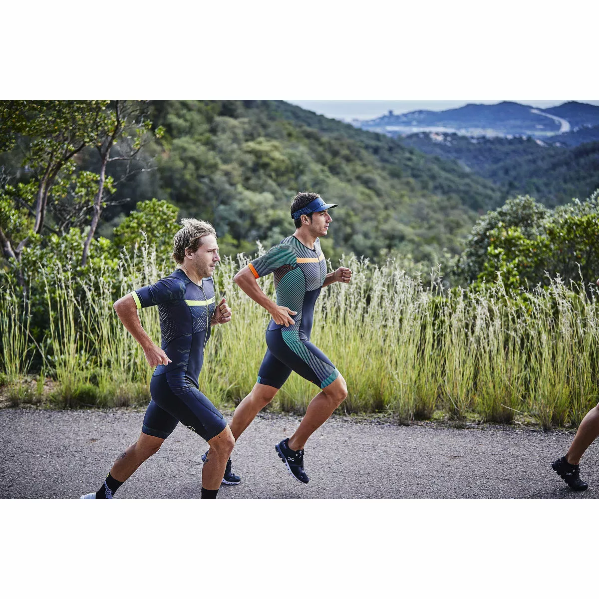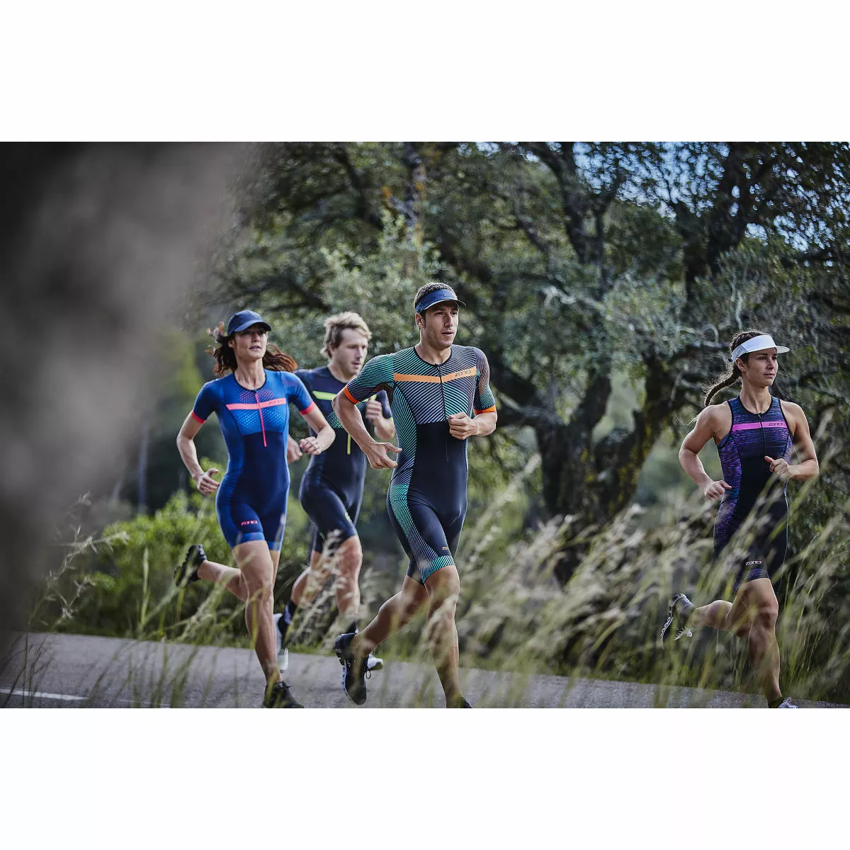 Badana Tri-Lite: Una badana de triatlón específica para la competición hecha a medida. Ni demasiado grande ni demasiado pequeña. Minimiza la absorción del agua y protege durante la fase en bicicleta sin ser un obstáculo en las fases de natación y running. Además, las costuras finas reducen aún más la irritación. La Elastic Technology y los ribetes hacen que se ajuste cómodamente alrededor de las líneas de brazos y cuello. Además, la nueva disposición de las costuras previene la aparición de roces por debajo de los brazos. Cremallera delantera para mayor ventilación durante las fases de ciclismo o carrera a pie. Bolsillo de almacenamiento con banda elástica ubicado en la parte trasera para guardar los artículos de nutrición, los recambios o los objetos de valor. Pinzas de silicona para piernas UFO: una característica muy popular de las prendas Zone3. Estas bandas van colocadas en la parte interior de la rodilla para evitar que el traje se mueva, reduciendo así las irritaciones en la piel. Costuras planas elegantes: diseñadas para conseguir una resistencia máxima y muchas menos molestias en la piel. Protección para la cremallera: forro interno con solapa envolvente para que la cremallera no te moleste. 78% Poliamida, 22% Elastano