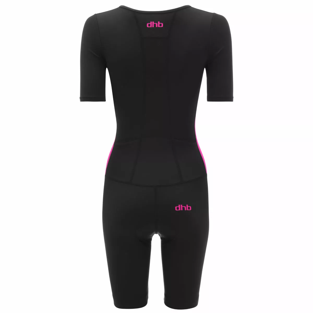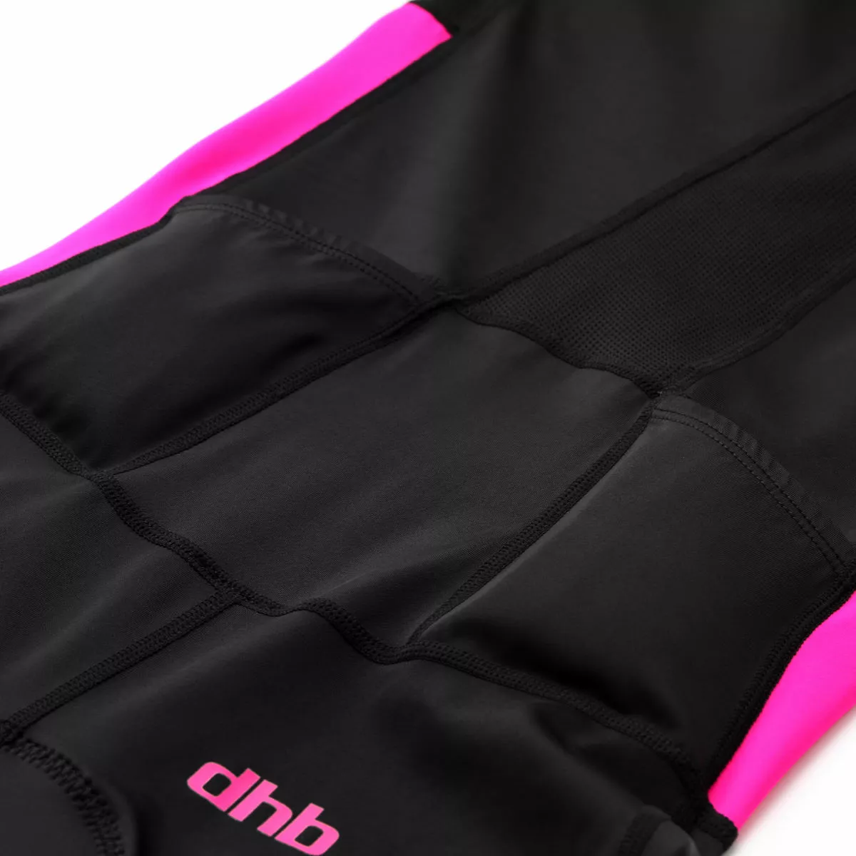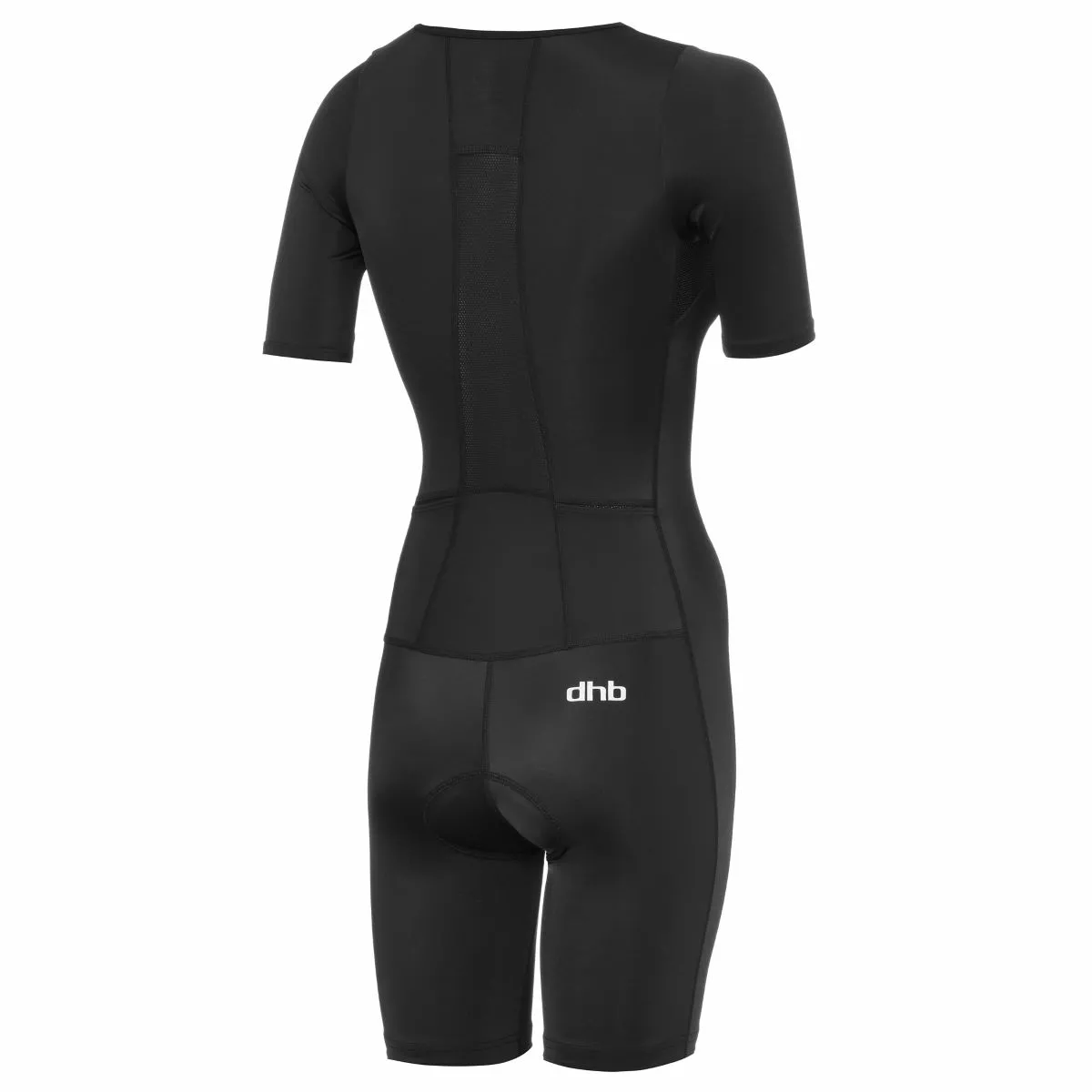 El traje de triatlón dhb Performance es fantástico, y presenta una badana perfectamente diseñada para la postura aerodinámica, pespuntes planos para mayor comodidad, bolsillos traseros de malla ergonómicos y de acceso rápido para guardar geles y barritas y elástico de silicona en los camales para evitar que se suban. Mantente fresco con los paneles de malla dispuestos en zonas estratégicas y la cremallera larga, que actúa como termorregulador, para entrenar y competir con total comodidad. Estas especificaciones, conjuntamente con el tejido Vita, garantizan un traje de triatlón que ofrece todo lo que necesitas como atleta de triatlón de distancias Sprint u Olímpicas.
